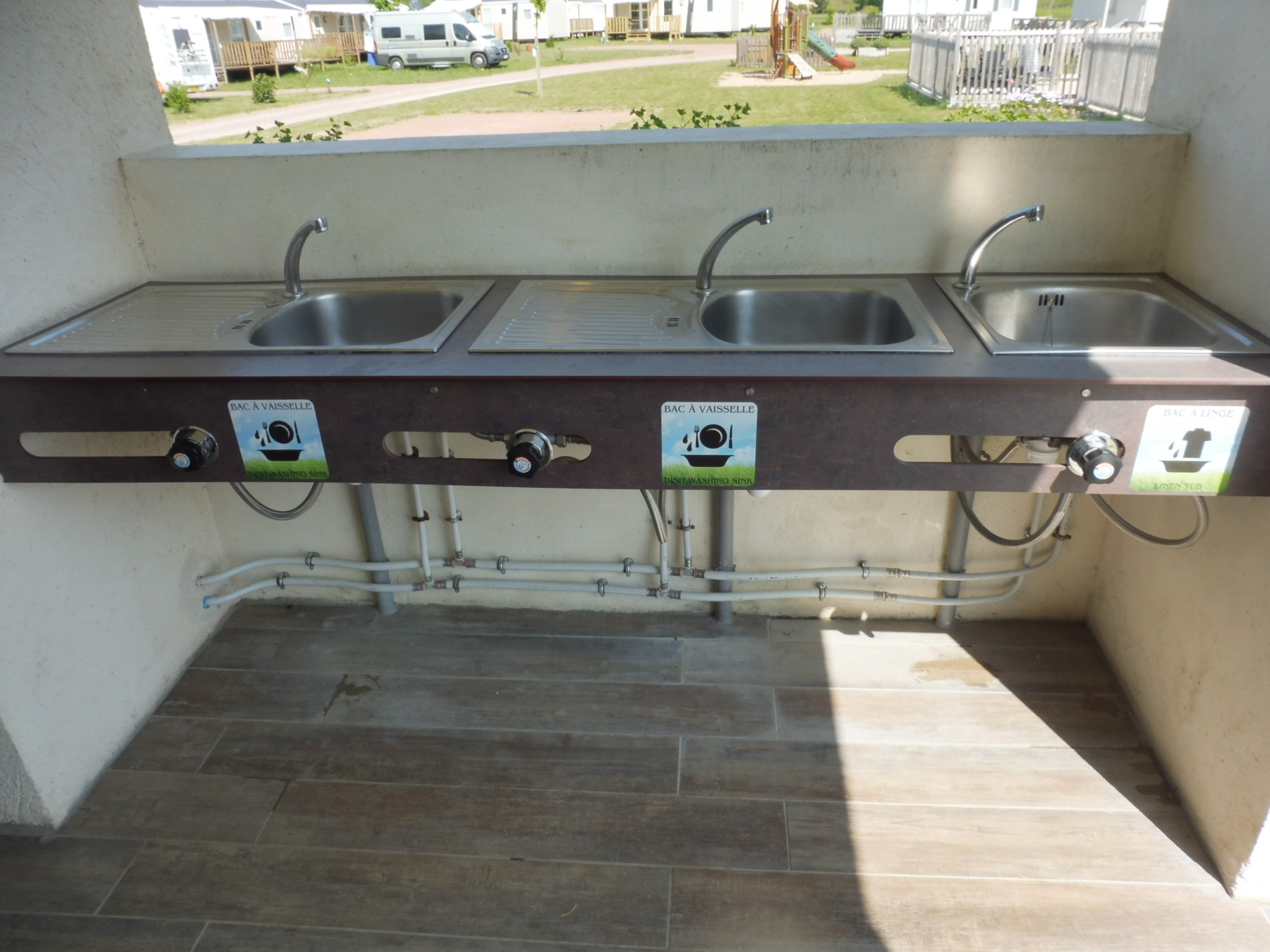 ainsi qu'une salle fermée pour la vaisselle et le linge