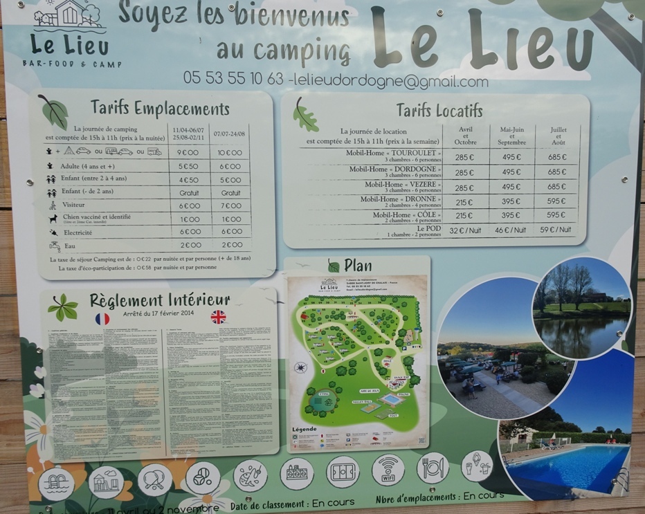 Accueil chaleureux , camping ACSI a 19€ , emplacements herbeux et ombrager , sanitaire propre , au village juste une boulangerie qui fait épiceries , wifi a l'accueil , pizzas faite sur place , du mal pour avoir la télé avec la parabole