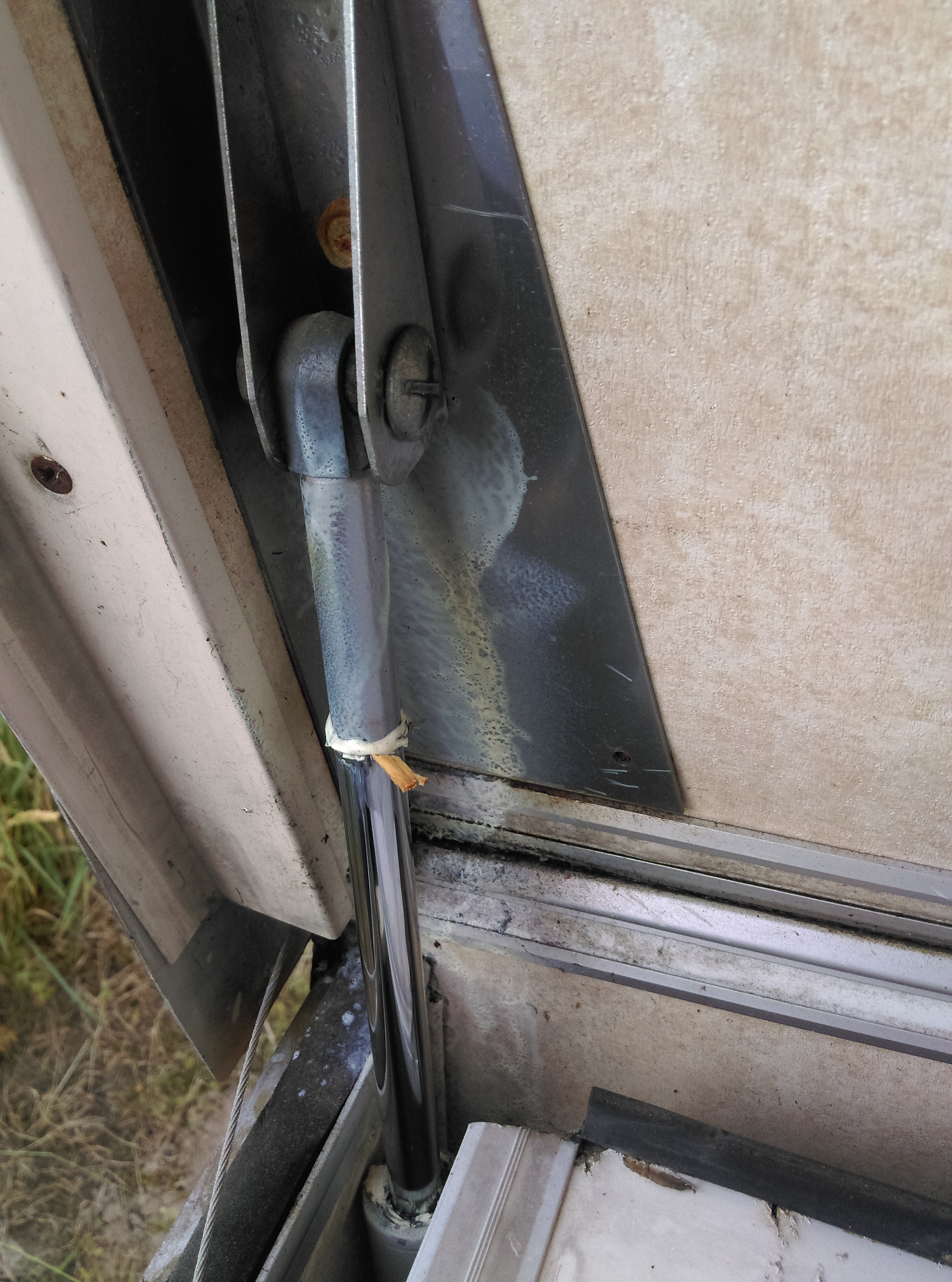 Bonsoir, voici les photos des vérins ainsi que des vérins montés.Pour les vérins je les ai fait commandes chez Caravane Palace a Labenne (40). La partie du haut est facile a démonté car je peux dévisser l'écrou et sortir la vis.Par contre,pour celui du bas ,cela vas être galère à démonter car je ne peux pas sortir la vis.