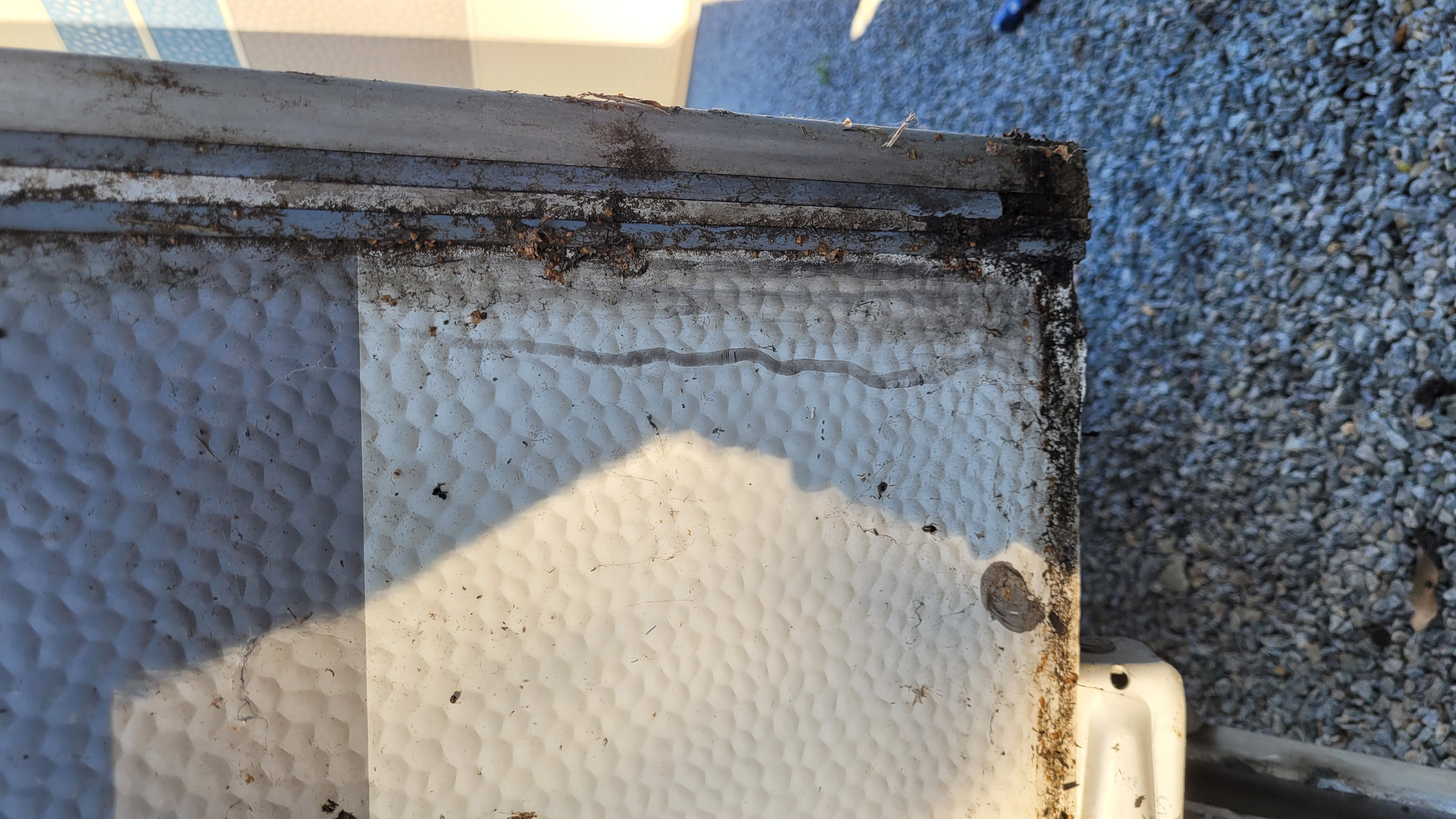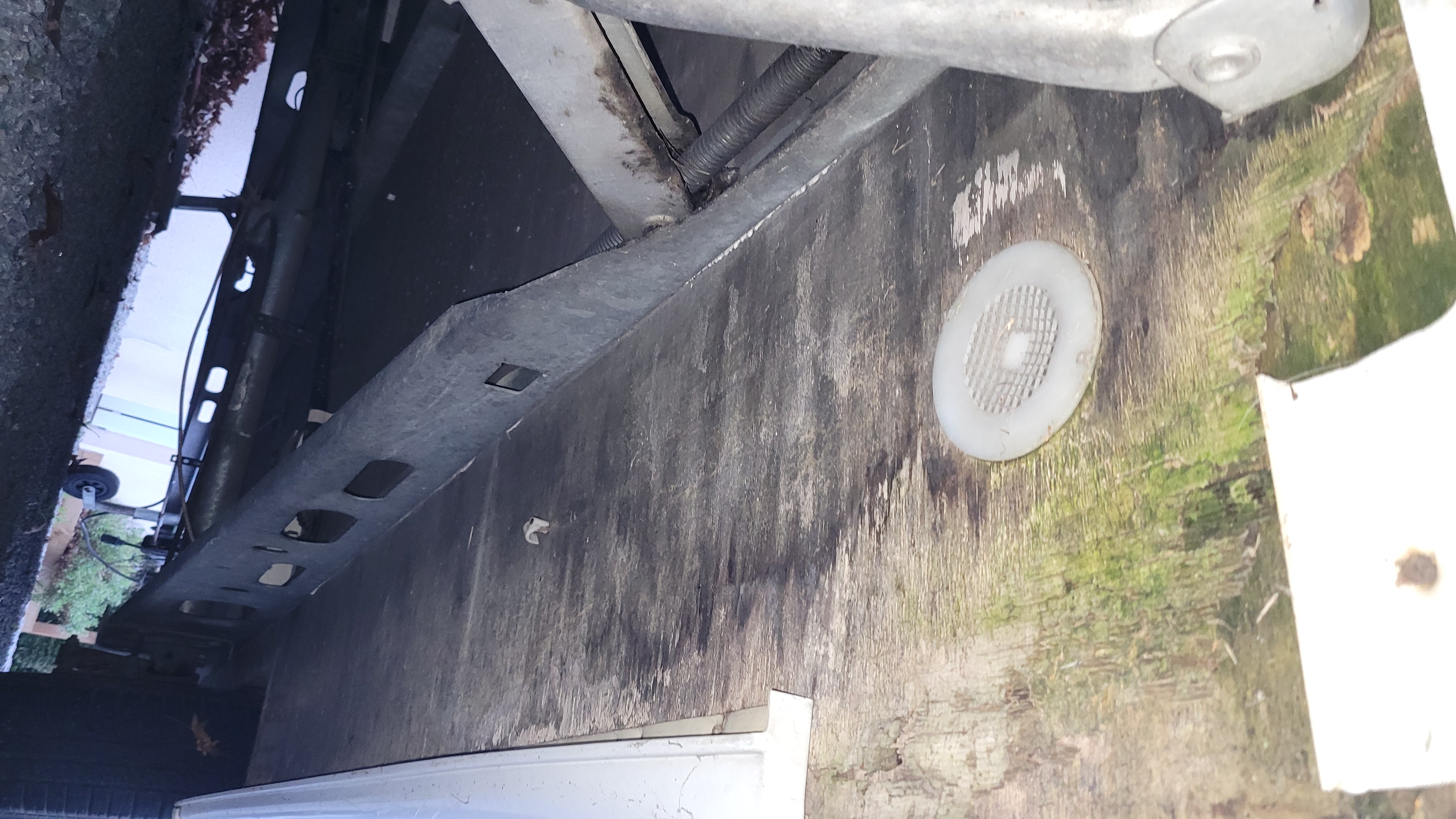 Non par l'extérieur le long des rails , ou bien via une vis manquante ou bouffée par la rouille... après est ce que ça a ramolli le plancher ? La paroi ? Ça dépend du temps qu'à duré l'infiltration.. Tu as des photos de cet angle par l'extérieur ?