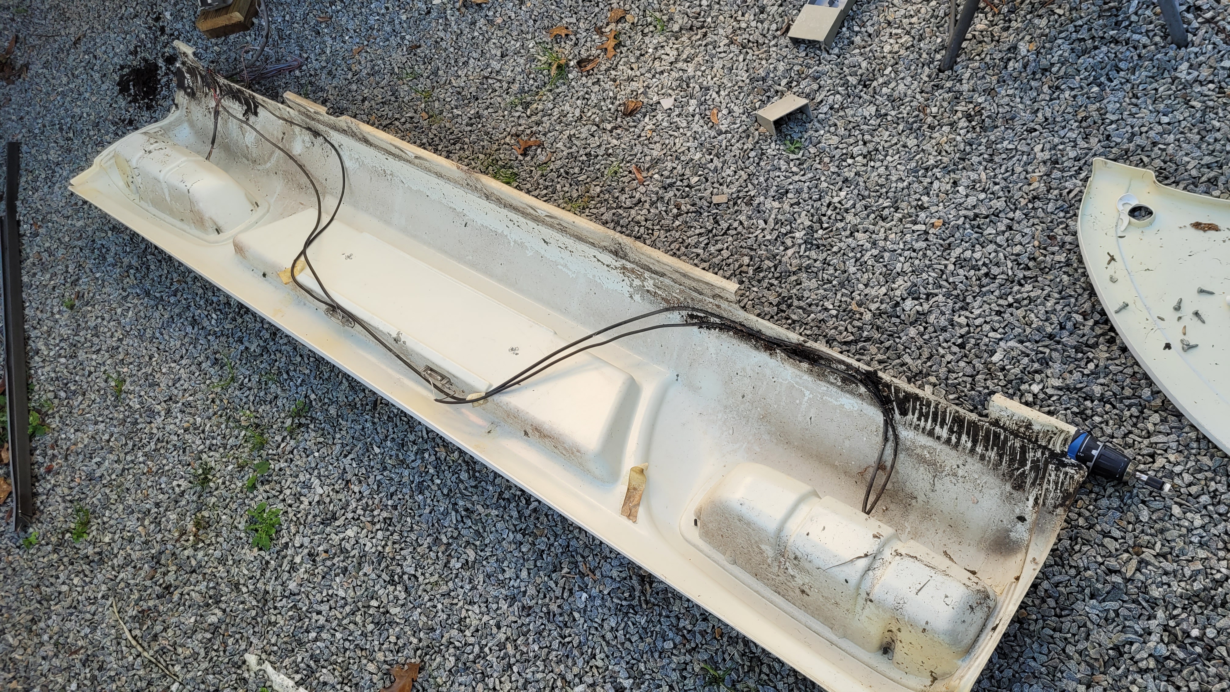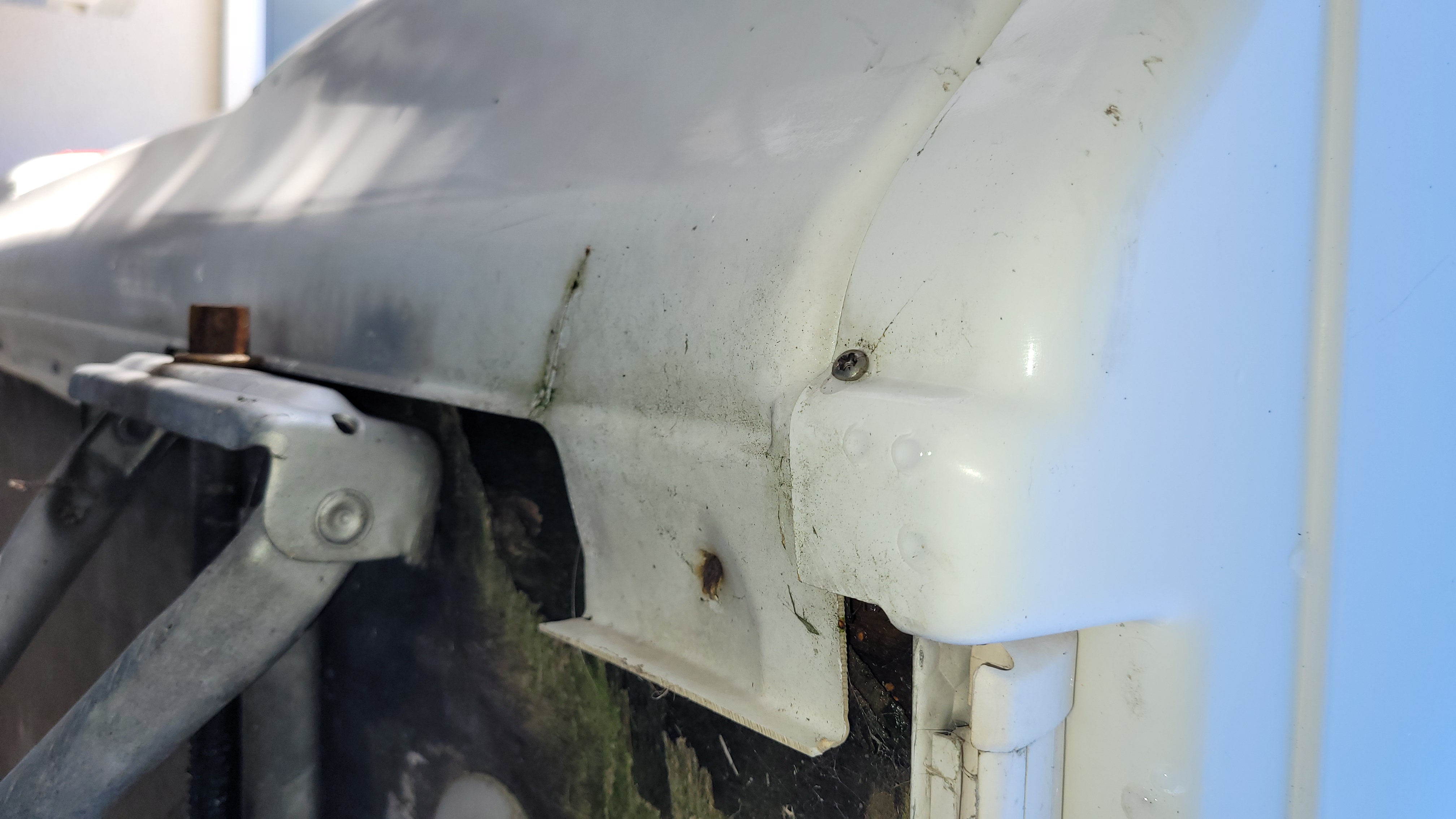 ...alors, contrairement à ce que j'ai dit, le jonc cache vis n'est sans doute pas à l'origine du problème mais pour moi, ca vient de l'extérieur ....quand on voit les traces noires dans la partie basse du pare choc (une fois démonté) ....en plus avec le rabat en plastique fixé sous la caravane le risque de rétention de saletés est important ....si ca venait de l'intérieur les dégâts seraient plus importants...on voit aussi des traces noires en bas du panneau arrière ...a droite mais aussi à gauche....en fait, pour être clair, il devait y avoir un gros tas de M...e accumulé et qui empêchait l'eau de s'écouler normalement ....