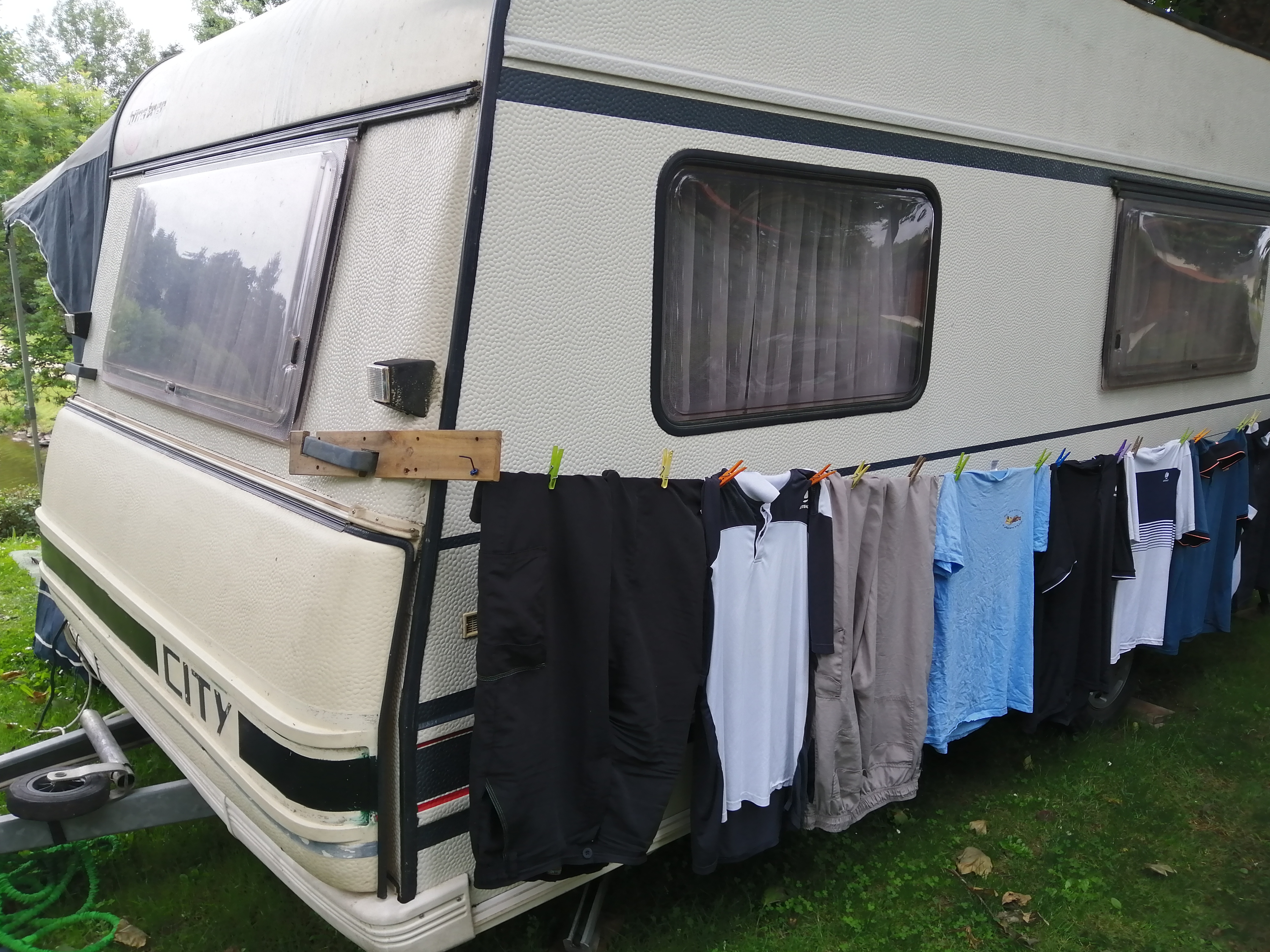 ou "un arbre et la caravane", de toute facon la "grande lessive" en camping c'est réduit à peu,