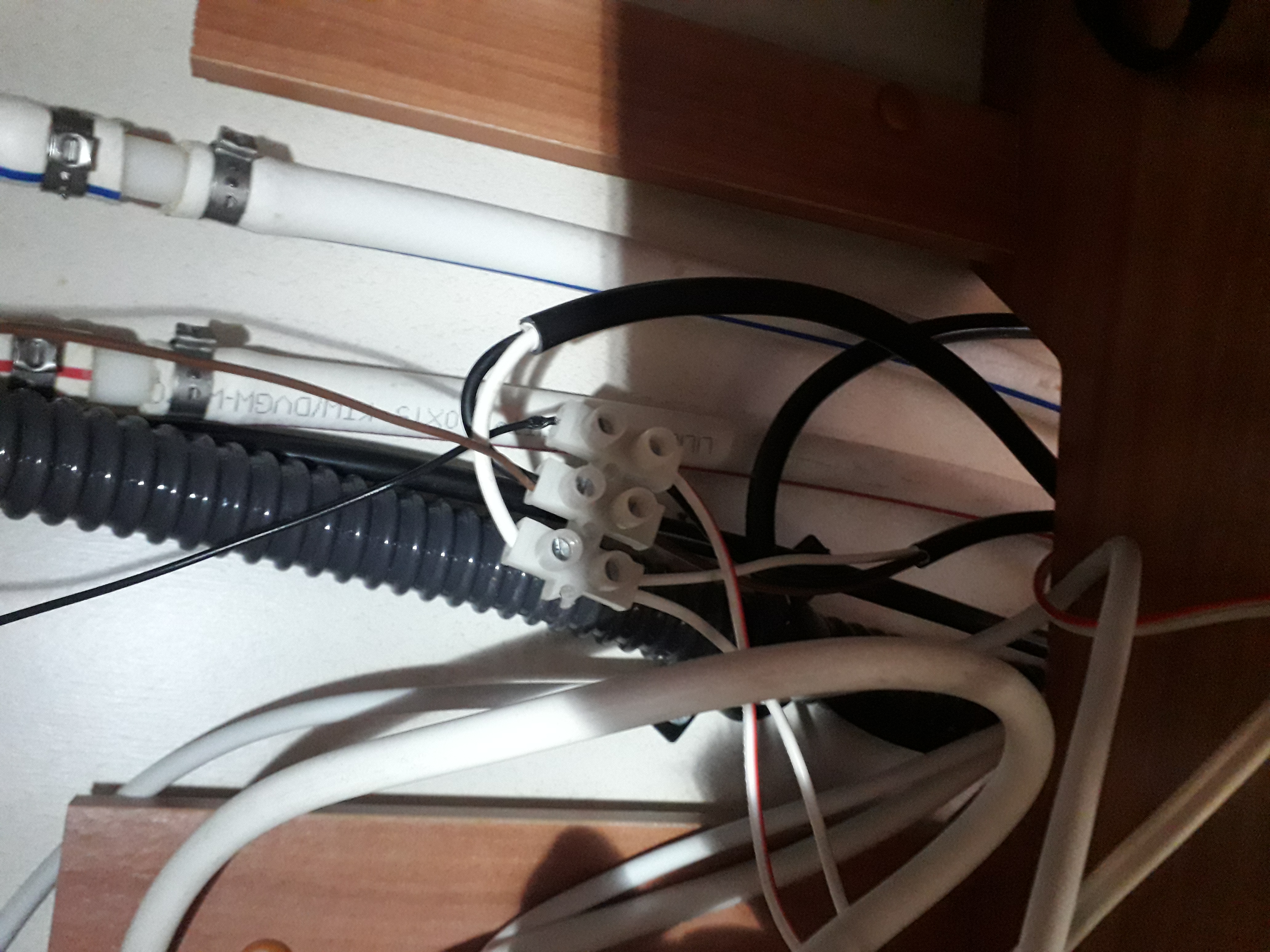 Oui le 12v arrive a droite et au milieu le neutre mais pour racorder le mitigeur je me demande si le fils bleu/marron et le + ou l'autre .
