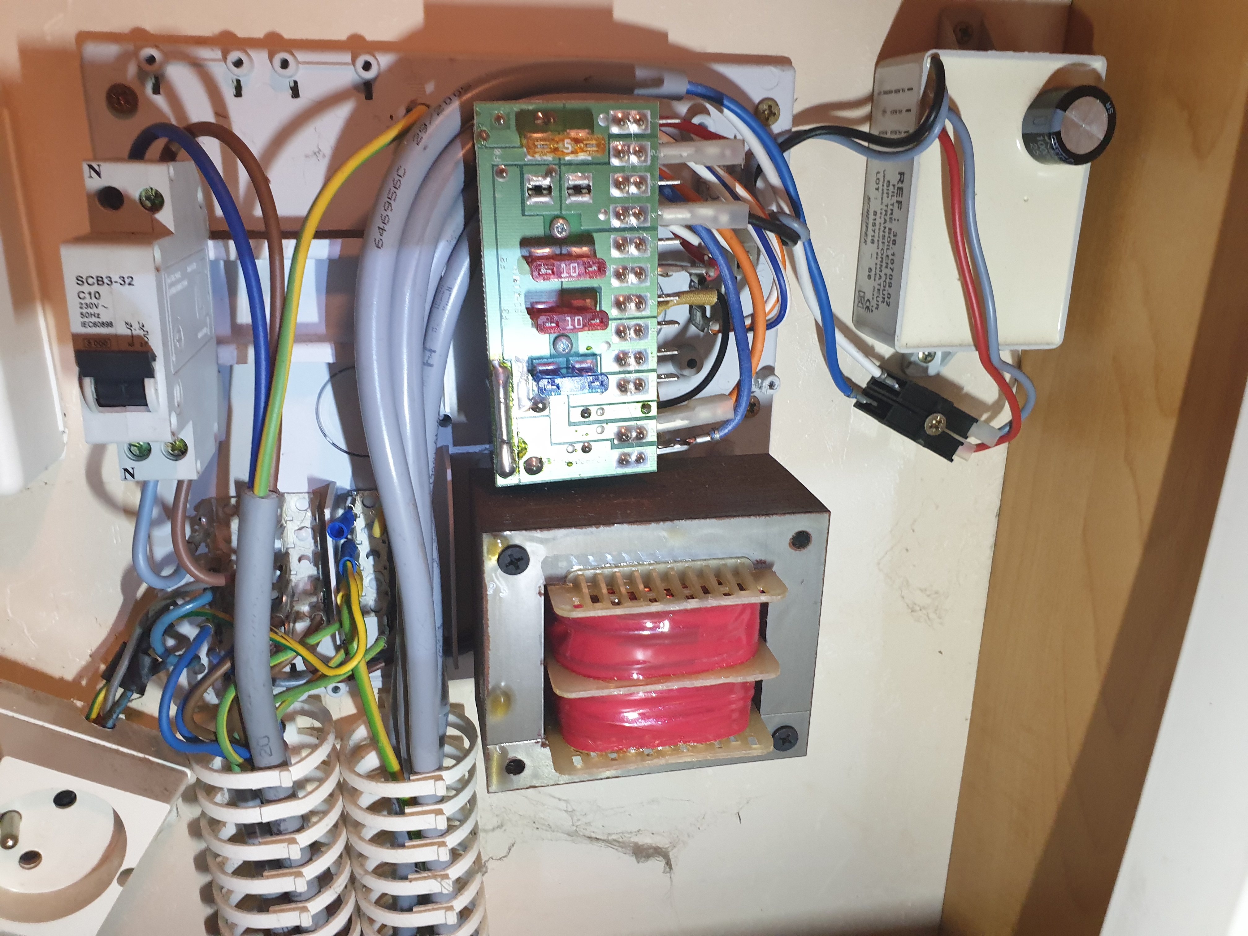 le transfo c'est du Nordelectronica fixé dans un coffre et le disjoncteur est a part dans la penderie