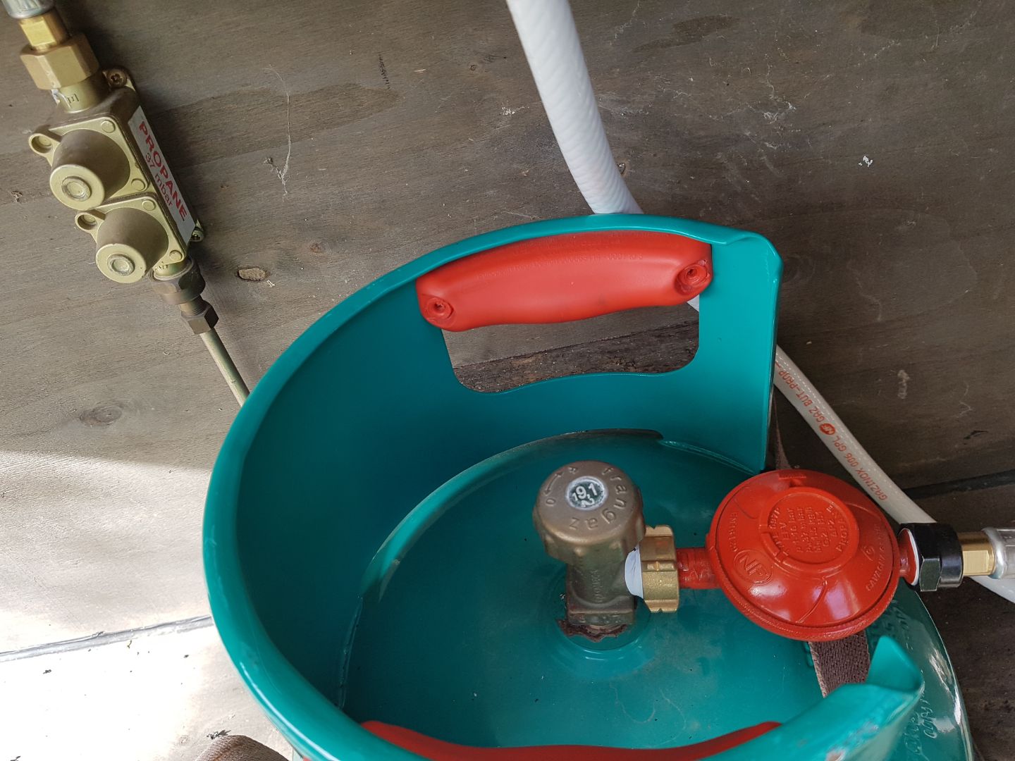 Le détendeur sur la bouteille est en trop tcaravane est déjà equipe tu as juste à raccorder la lyre directement à ta bouteille, ouvrir les vannes (la vanne d'arrêt blanche il faut la reenclenche à chaque changement de bouteille)