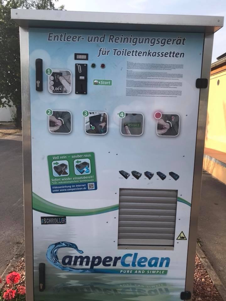 Actuellement je me trouve en Allemagne, pour la première fois j’ai vu un vidoir automatique de cassettes Therford . Si j’ai bien compris, il suffit de mettre une pièce de 2 € , d’insérer la cassette et elle est automatiquement vidée et rincées et remplie du produit adéquat en quantité suffisante Assez original