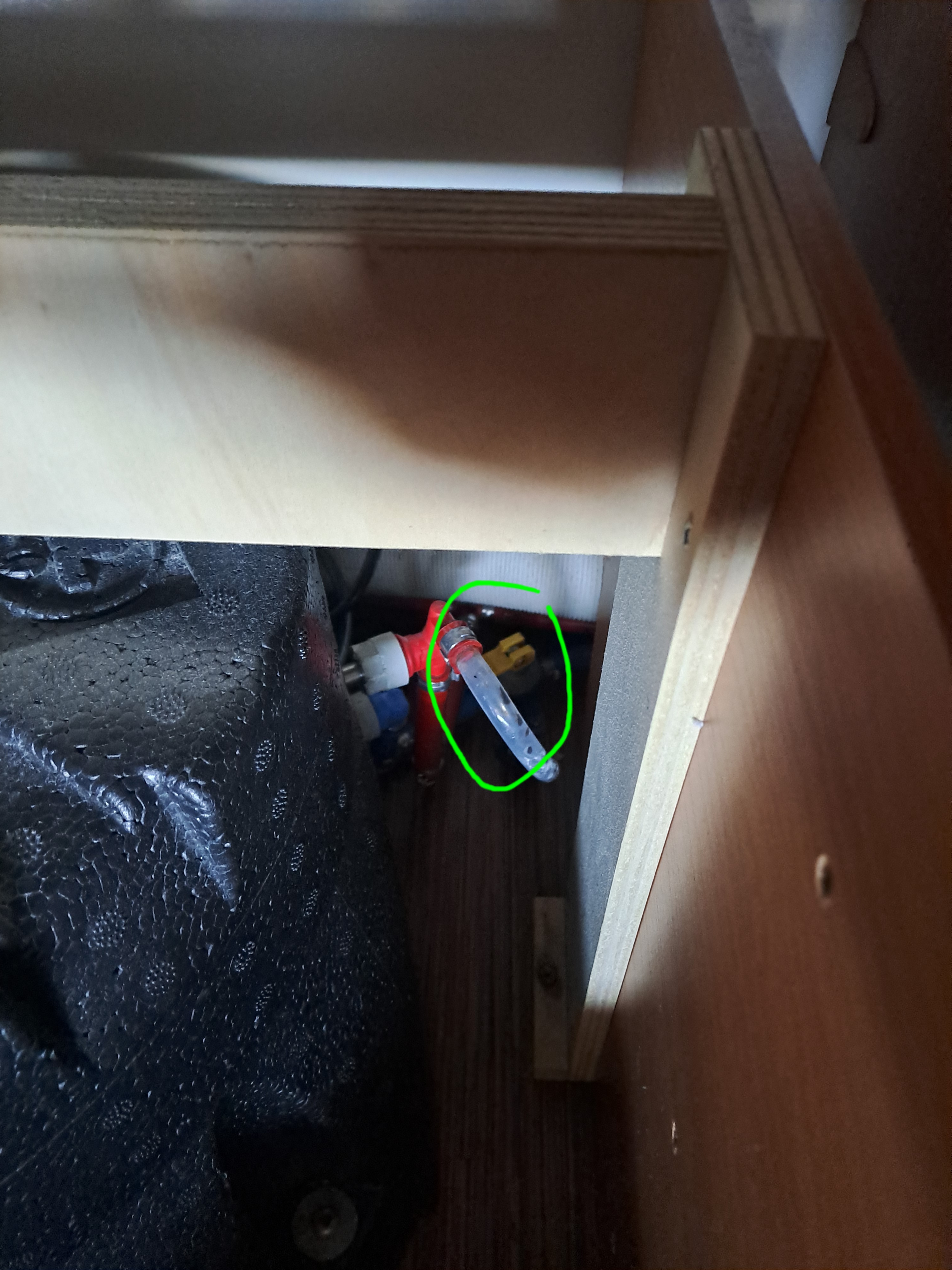 L'eau coulait bien en dehors de la caravane par une petite durite, seulement lorsque que je tirait de l'eau (qu'elle soit froide ou chaude).