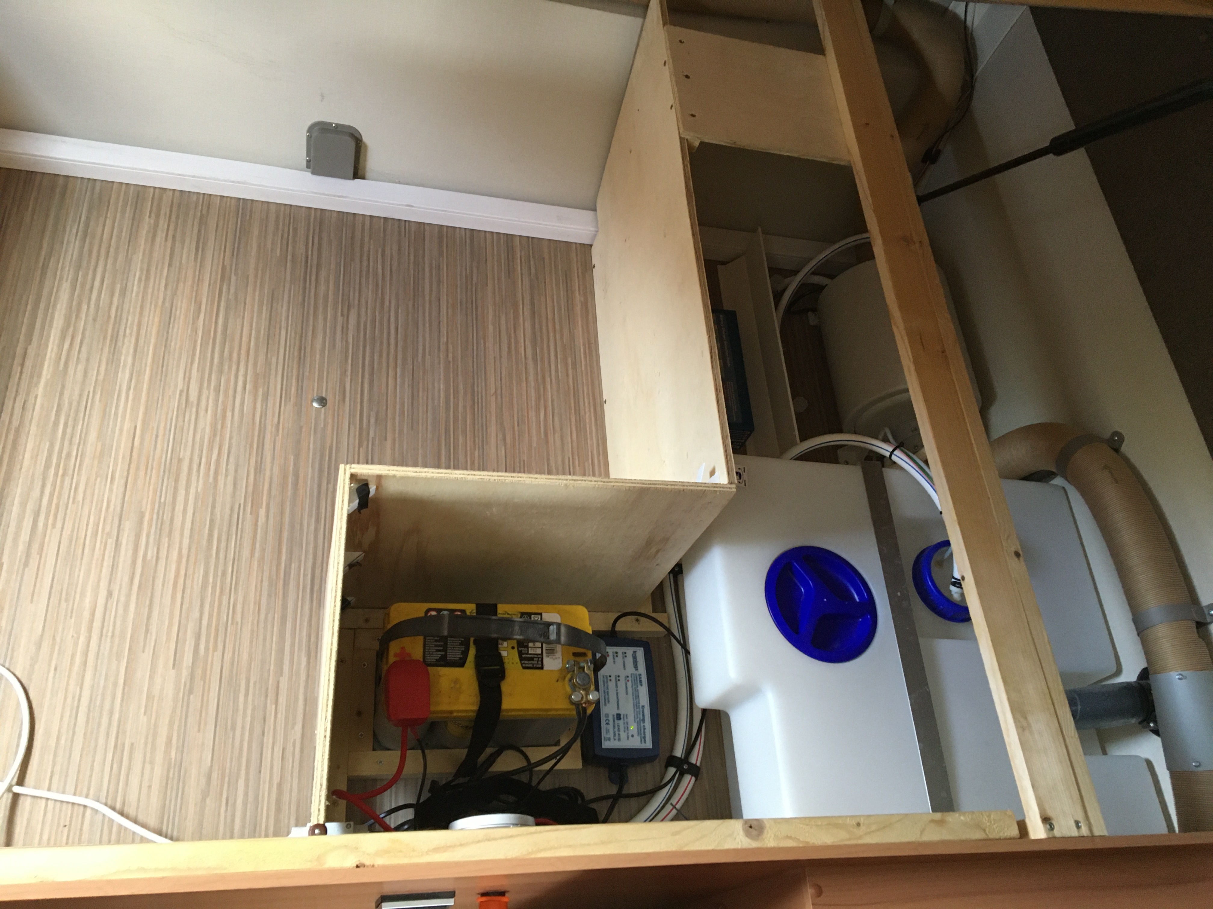 Arrivé au camping, branchement sur le secteur et de l'eau qui sort du coffre
