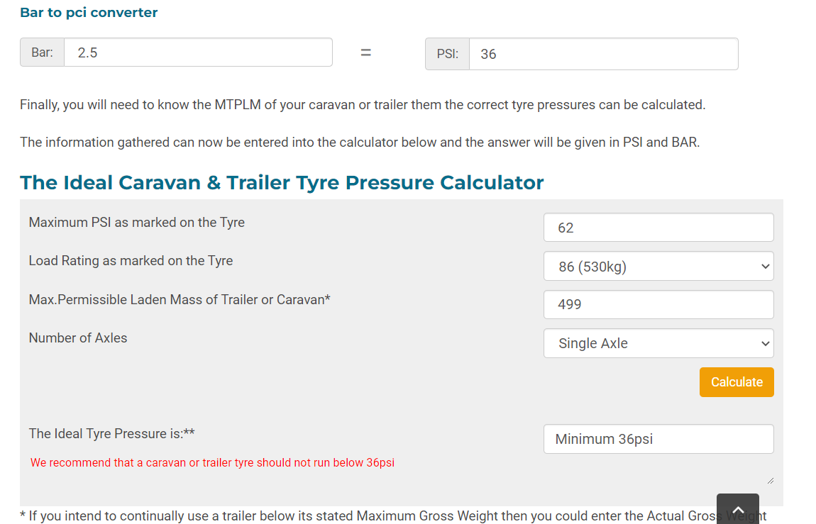 Pression_Gonflage = [ Masse_Maxi_Caravane / (2 x Masse_Maxi_Supportable_Par_Un_Pneu) ] x Pression_Maxi_Acceptée_Par_Un_Pneu