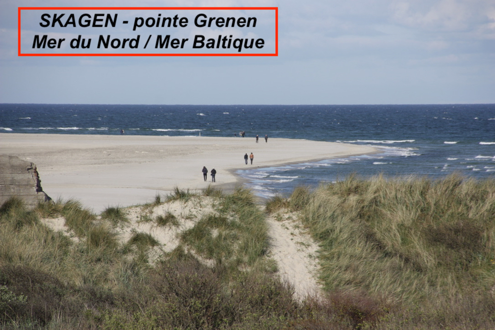 Quand on se rend à la Pointe de Grenen, depuis cette bande de terre, on voit les remous faits par les eaux, c'est l'endroit où la Mer du Nord rejoint la Mer Baltique. Photos prises le matin de bonne heure avant que la foule arrive ....