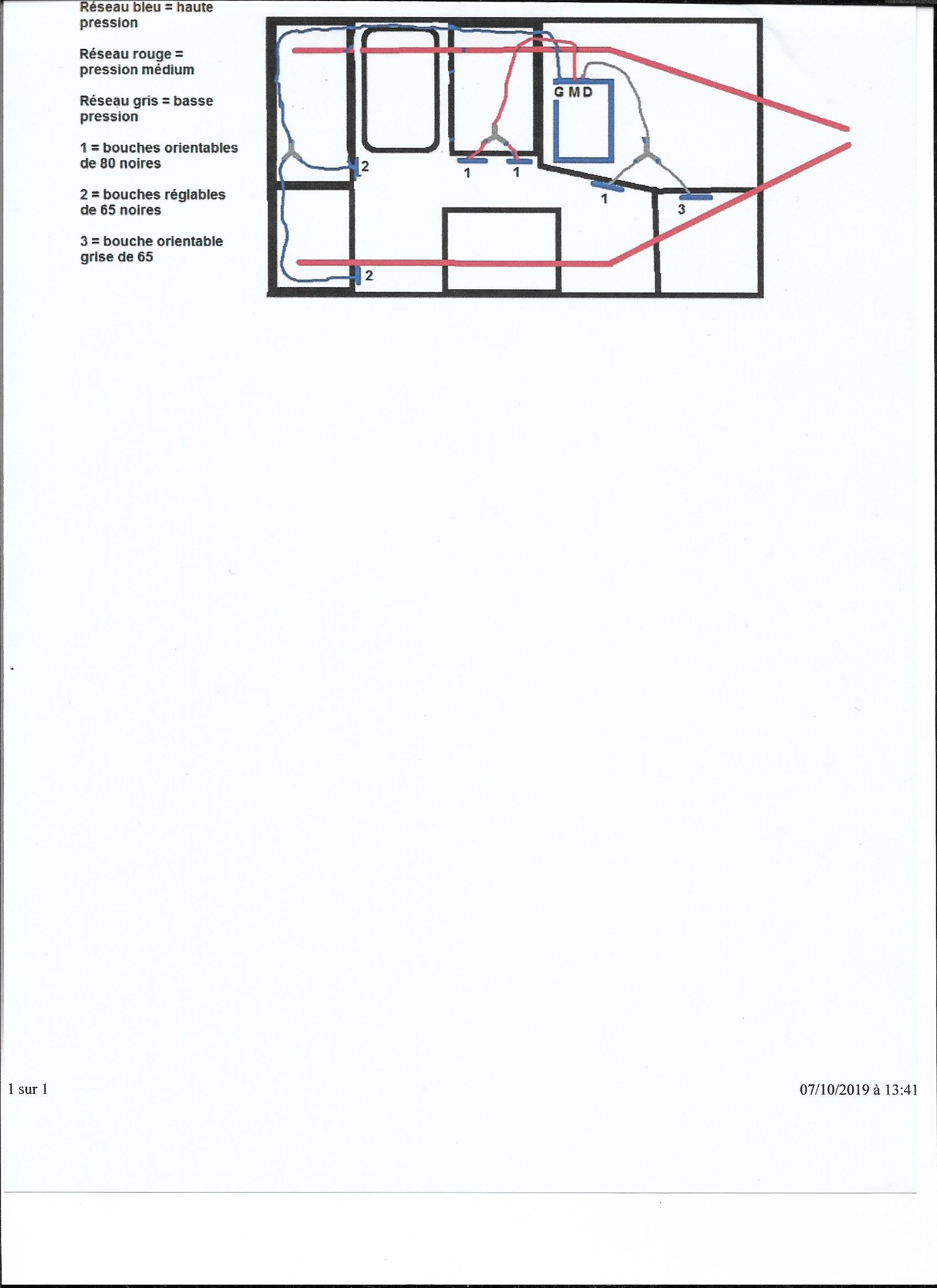 A partir de 3 bouches de sortie sur le groupe, on peut diriger où l'on veut les flux d'air : En bas, en haut, en bas et en haut, à gauche, à droite, à gauche et à droite, etc…. Tant que le permet la configuration interne de la caravane on peut imaginer et créer à sa guise une ventilation la plus équilibrée possible.