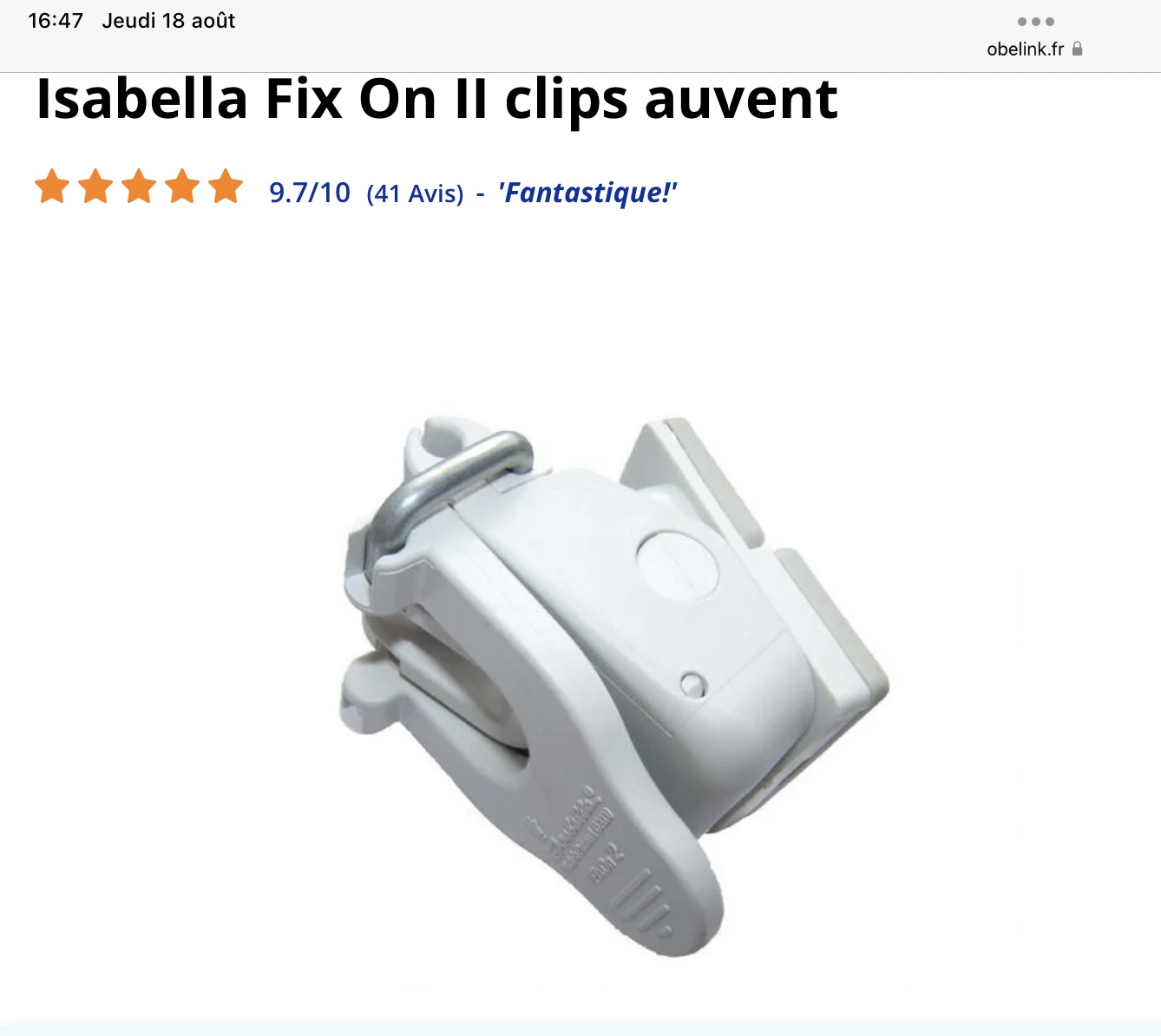 Personnellement pour mon auvent « Isabella » J’ai des clips qui passent bien sur l’Eriba
