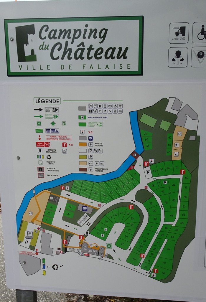 bonjour je suis aller a falaise aux camping du chateaux du 3/04 aux 5/04 c'est un camping municipal malgre la pluie les environs il y a pas mal de choses a decouvrir internet gratuit j'ai rencontrer pas mal d'anglais avec ma caravane anglaise j'etais dans mon milieu j'ai passer un bon moment discution sur place de caravane anglaise ===3