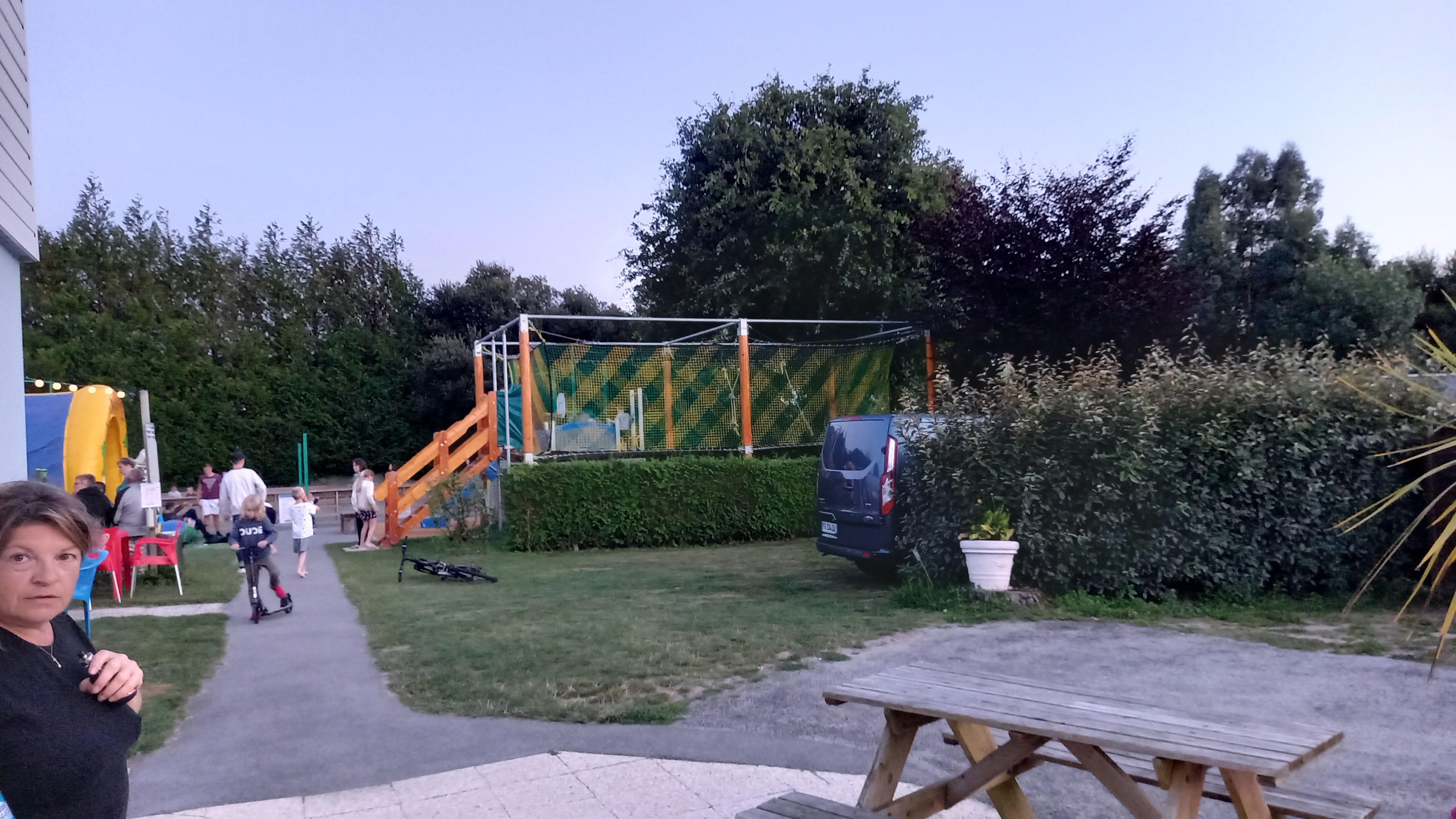 Passons au camping . un emplacement digne d'une voie de garage avec une pente incroyable, des racines partout, impossible de tenir correctement a table et manger sous le auvent sans organisation " spéciale ". La présence d'un hôtel juste derrière la clôture, nuisance sonore dés le matin. Rien d'exceptionnel côté piscine.Prise pour la caravane de l'autre côté, du coup passage de la voiture du voisin sur le câble électrique...