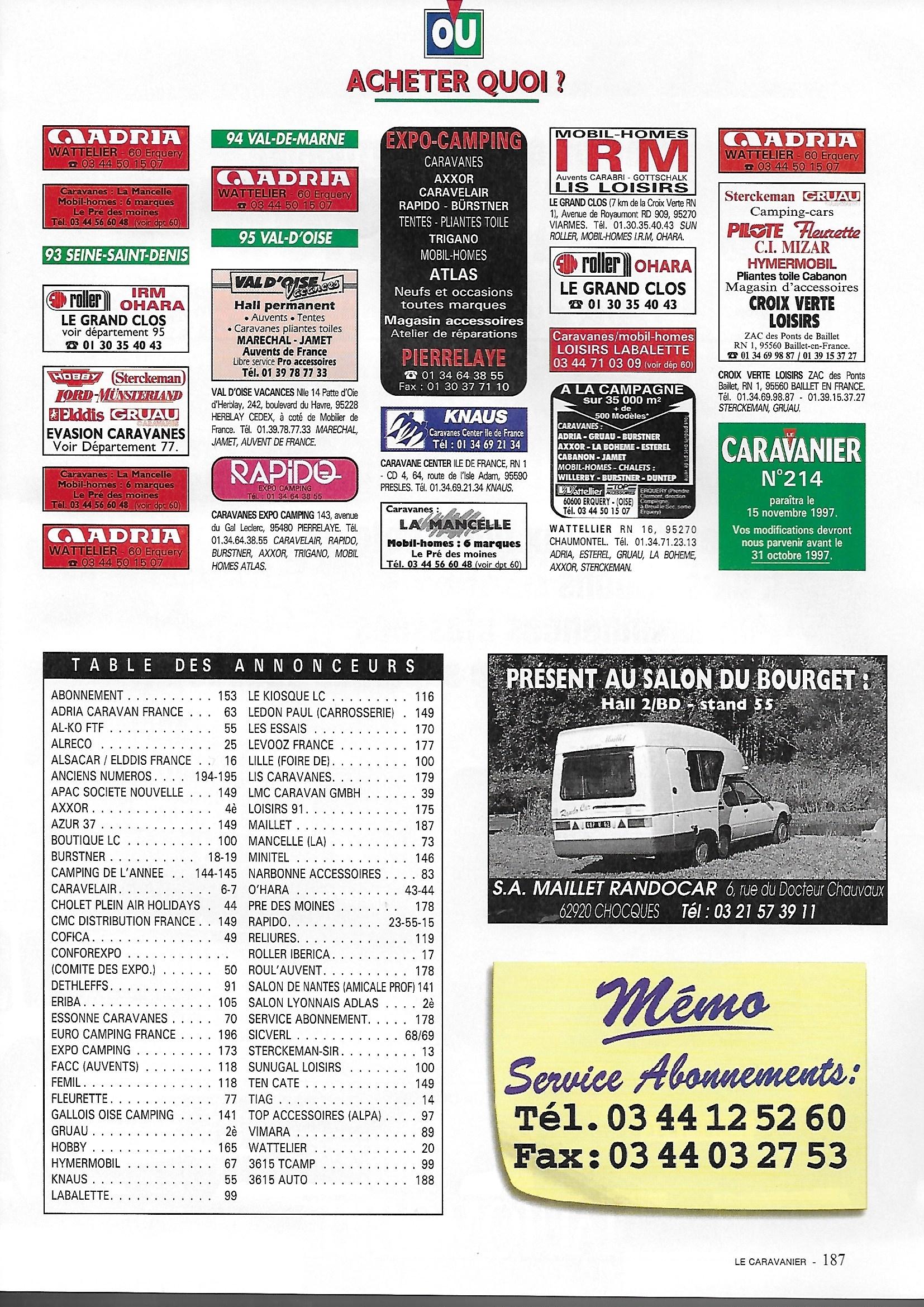 le courrier des lecteurs, les exposants du Bourget, Maillet et Clipcar qui fait son retour au salon, les cotes de l'occasion, une publicité Randocar et une annonce de particulier.