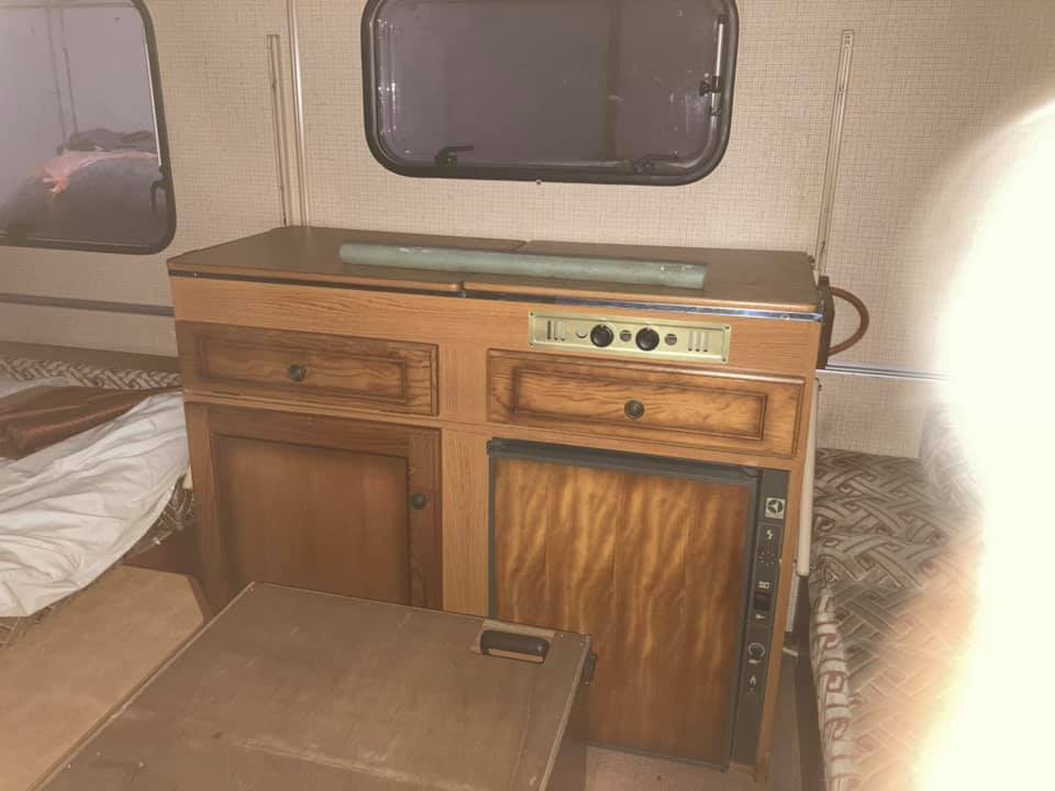 Caravanne pliante Esterel en très bon état. Cuisine évier chauffage gaz et auvent. Deux lits double. Pas d'auto sécurité car moins de 750 kg. Plus servi depuis quelques années mais conservée dans un garage bien au sec