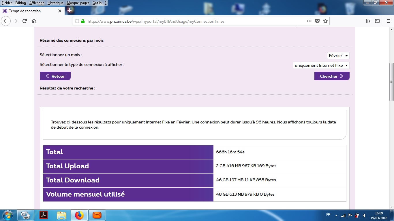 J'ai le forfait Internet illimité, si je peux l'utiliser à condition de trouver Proximus auto fond, mais bizarrement lorsque je suis en France, trop généralement je ne trouve rien.