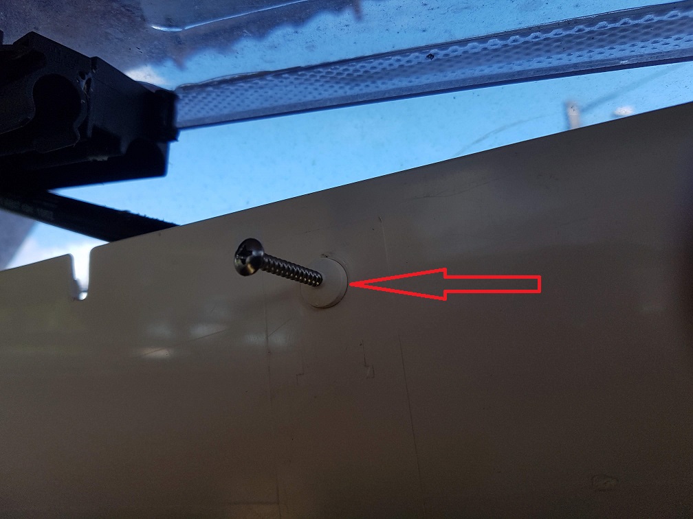 J'ai commencé par enlever ces deux petits caches : percer puis visser une vis parker (ou à bois), ensuite tirez... J'ai dû prendre une pince et tirer comme un tabazu en évitant de m'assommer le menton.