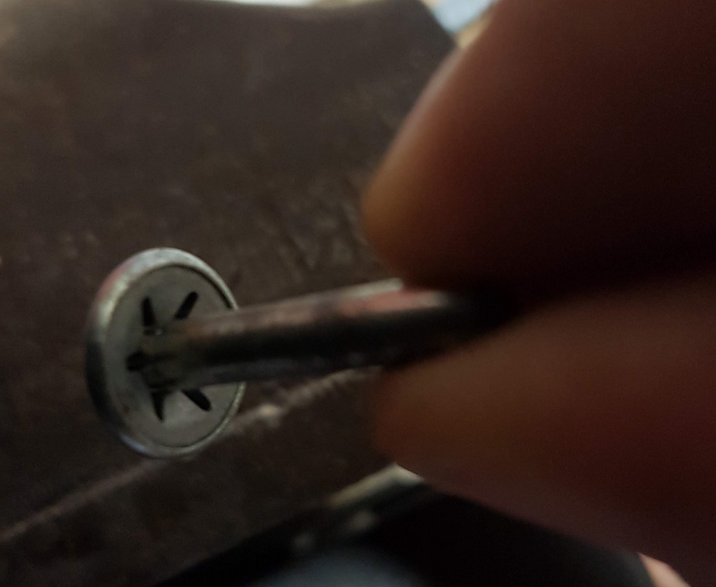 On peut apercevoir la goupille au fond du trou