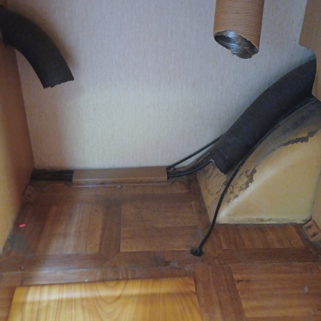 En attendant ce week end pour attaquer à vider le superflue j'ai cette photo avec des tuyaux qui arrivent sous un meuble mais sans branchement... Ventilation de la caravane? Vu l'age je doute que sa correspondent à un système de clim (il y a aussi un troue dans le plancher à cette endroit ( recouvert sur la deuxième photo par un raccord papier).
