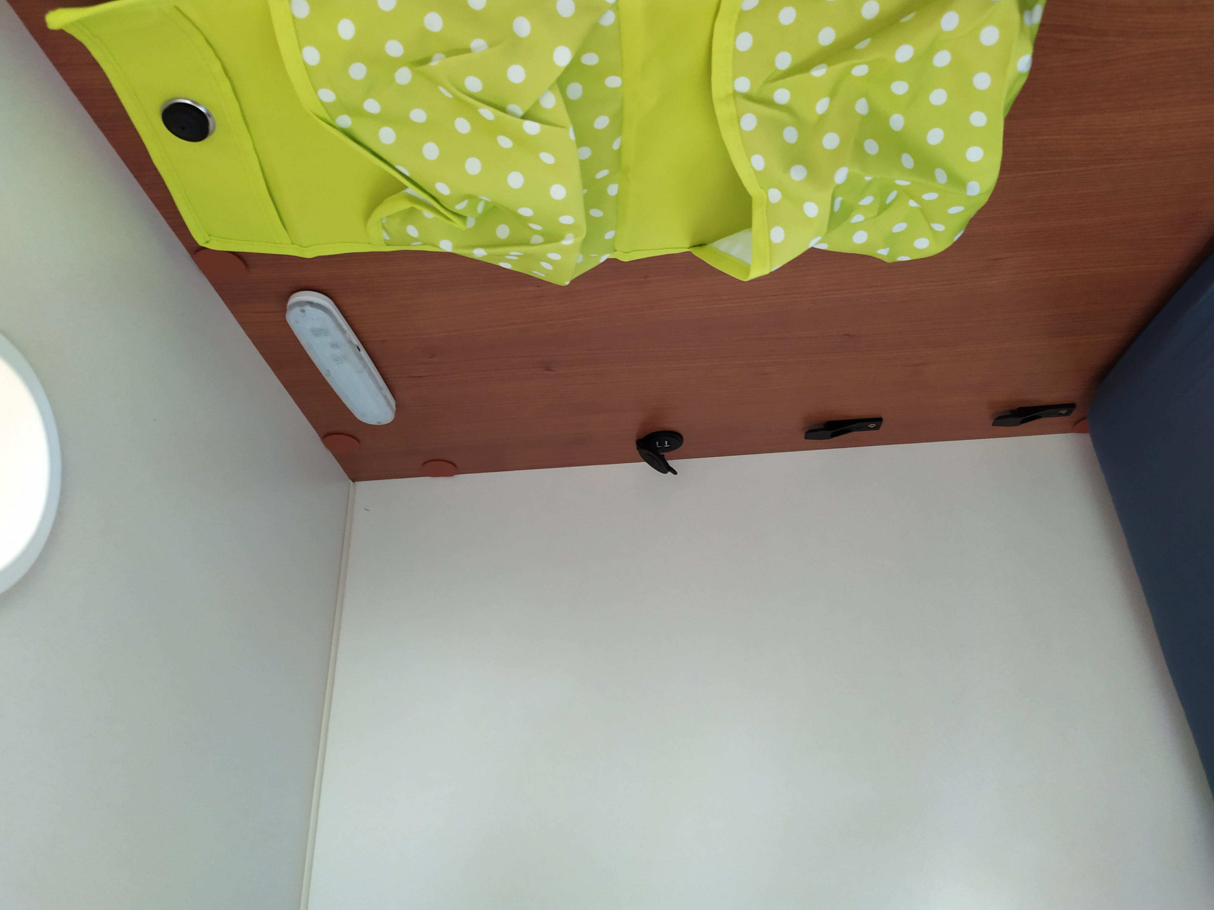 Hello, j'en entrepris un petit relooking de l'intérieur de la caravane, j'ai refait toutes les portes avec du papier autocollant de la marque d-c-fix. Je n'ai pas vraiment trouver des avis sur ce type de papier alors j'ai tenté et on verra bien! J'en ai profité pour installer des portes USB vers les 2 lit superposé et des petits rangements pour les enfants.
