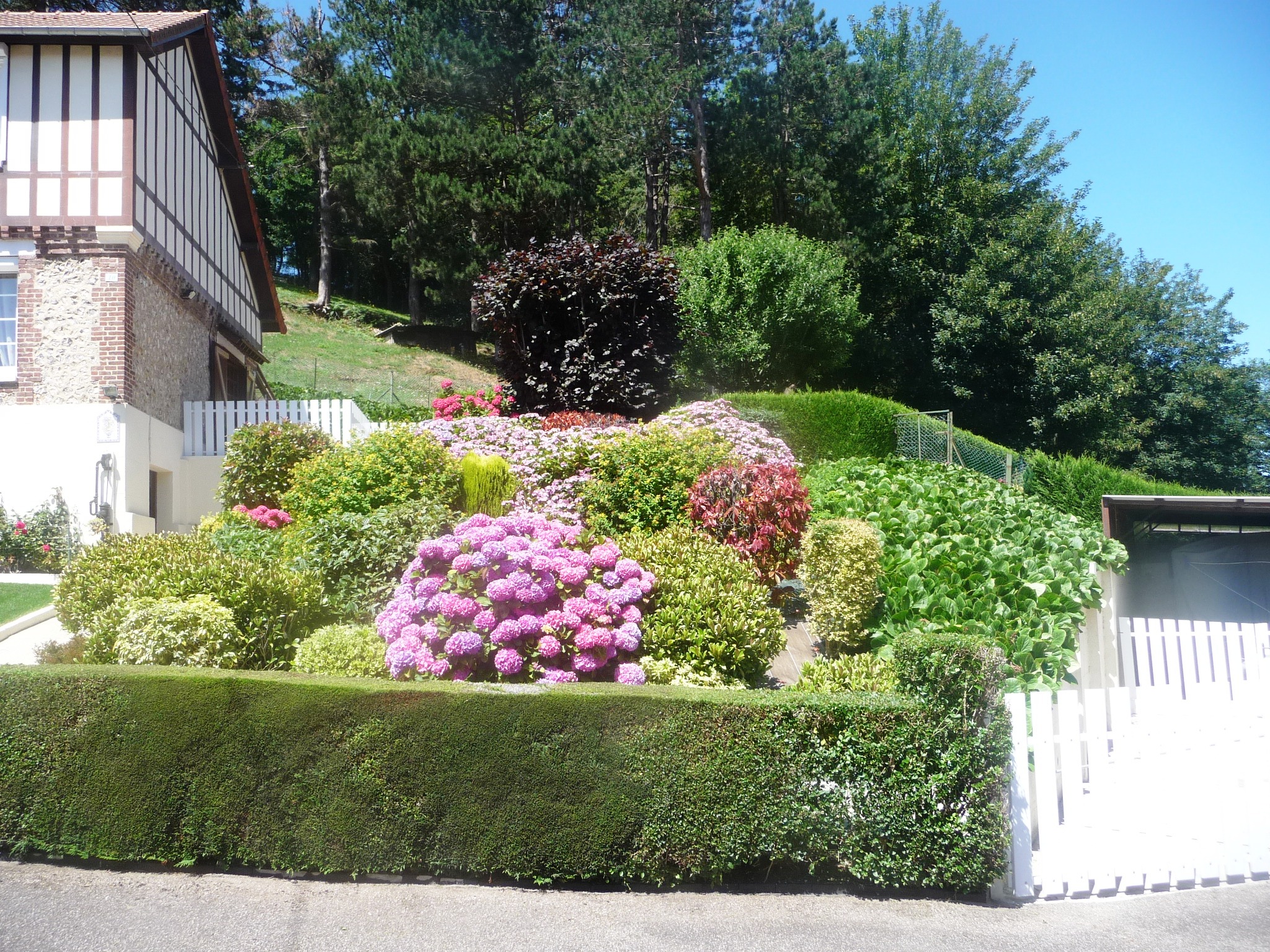 Apres des années de débroussaillage , fini la corvée , plantations d’hortensias en 2016 et voici le résultat
