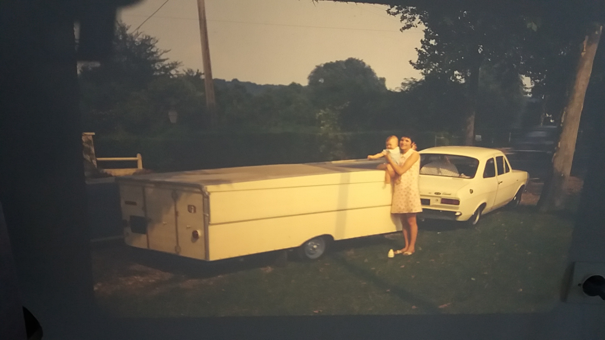 la Ford Taunus 1600 GT de 1971 avec la même WaWa en bord de plage à Blanès ( exactement le 28 juin 1971 en voyage de noces ...)