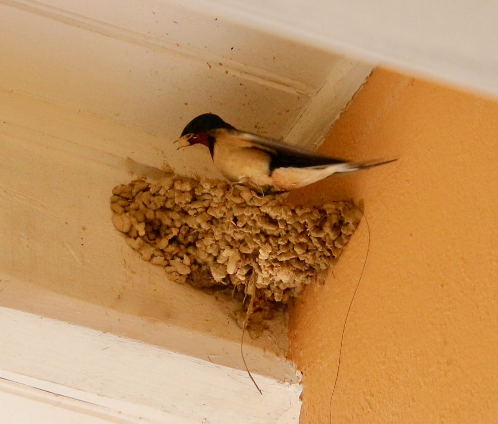 je pense que des hirondelles ont réintégré un ancien nid ...mais rien de sur ...je n'ose pas aller les embêter