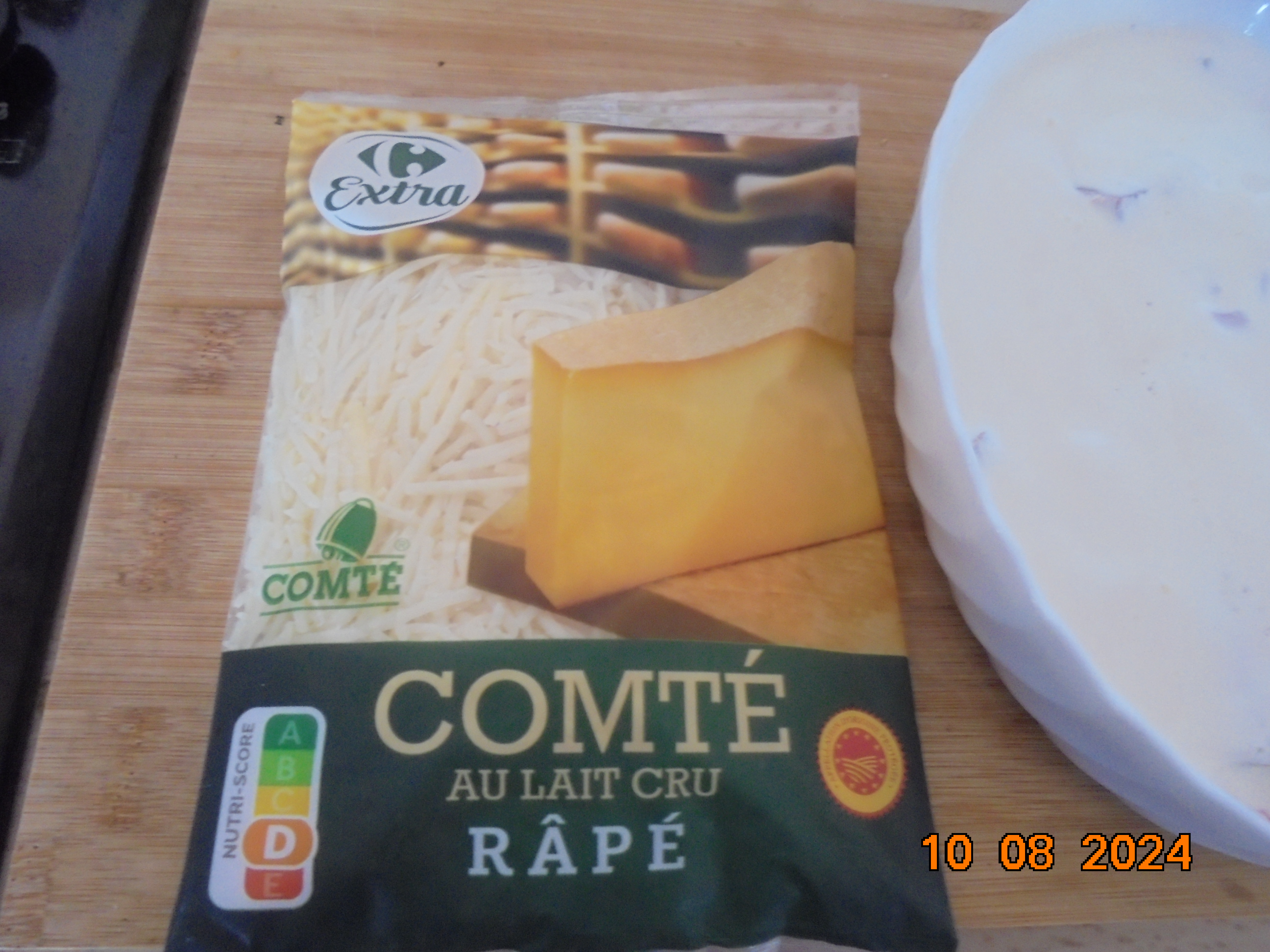 Un peu de béchamel et j’y dépose les moules, un peu de béchamel et j’y dépose des crevettes, les grises sont meilleurs, mais les roses ne sont pas mauvaises. Je couvre avec le reste de béchamel et je parsème généreusement du fromage râpé, ma préférence vas vers le Comté (un fromage de cœur)