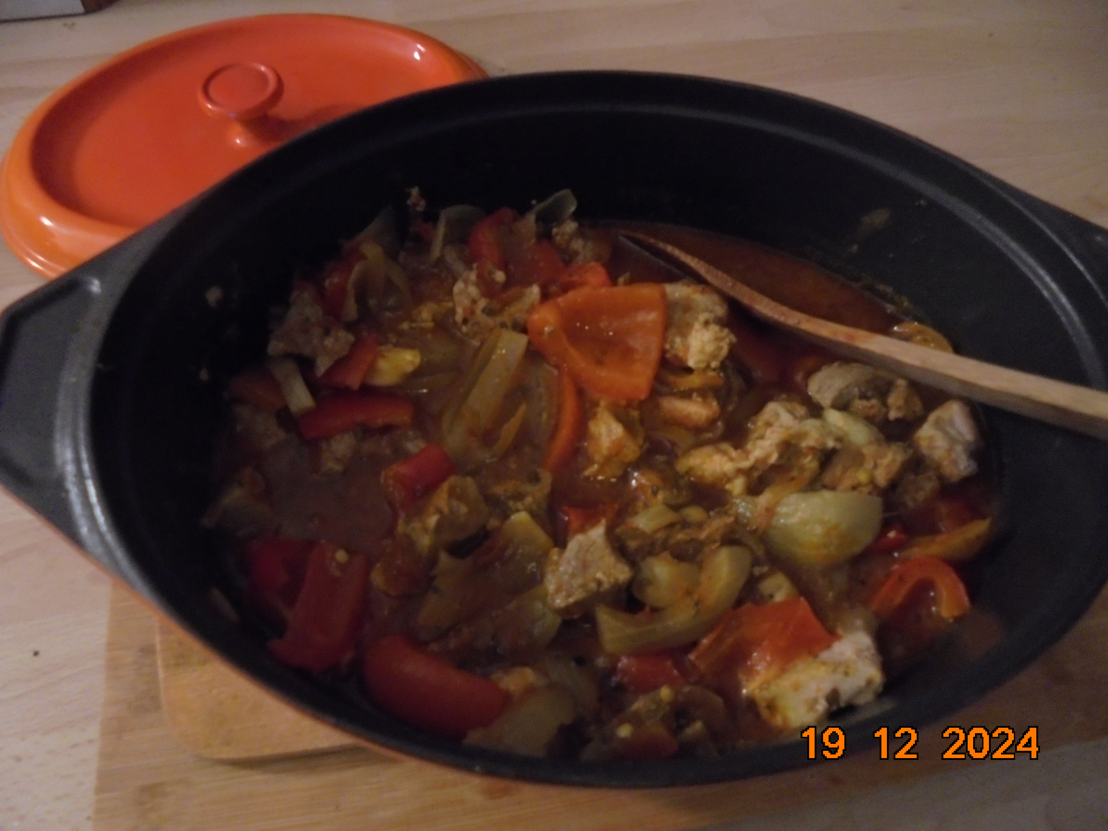 J'ai découpé ma rouelle en petits carrés et je l'ai cuisiné avec des poivrons, de l'ail, échalotes, concacé de tomate et épices