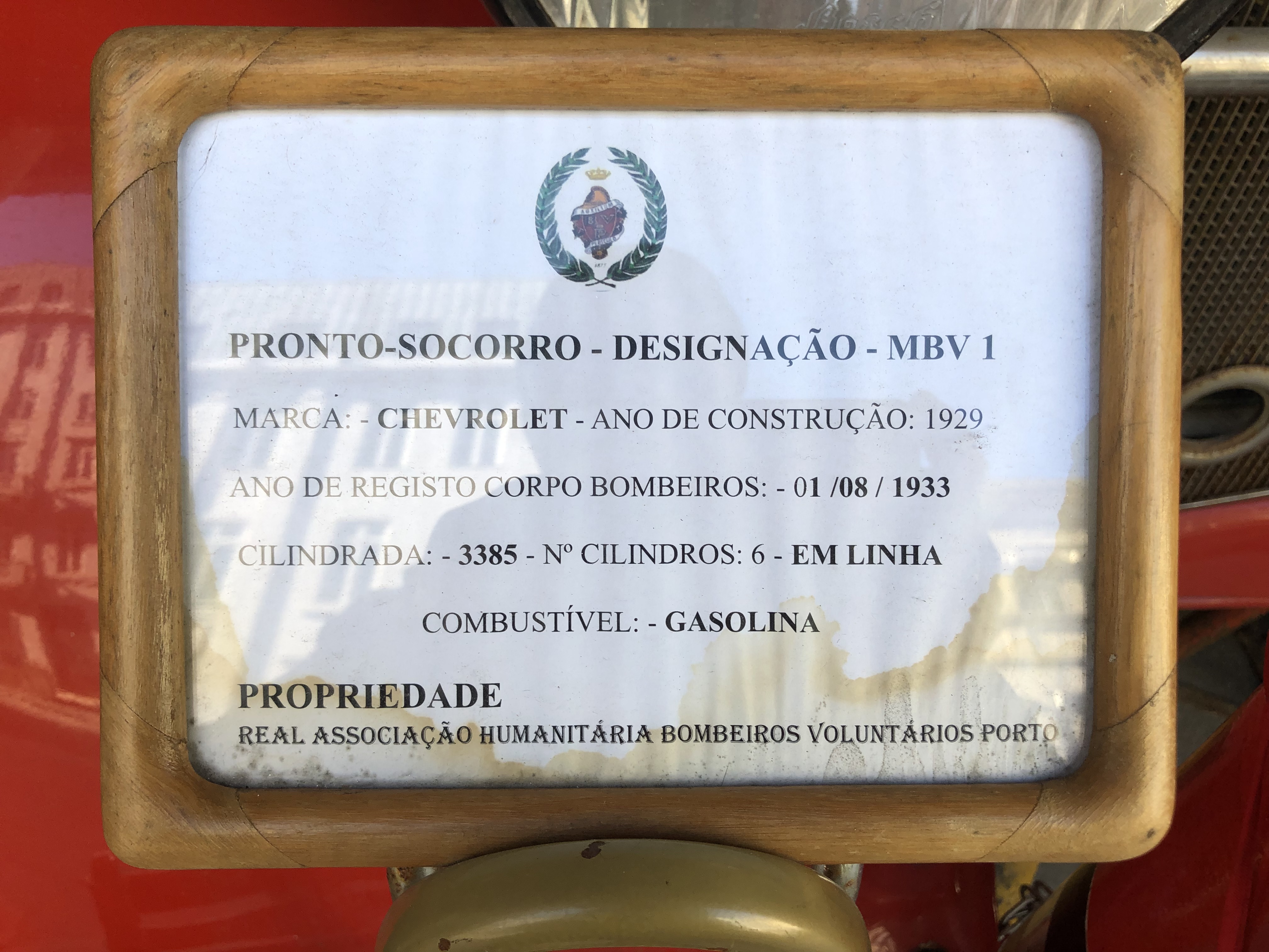CHEVROLET de 1922 dans la caserne de pompier de PORTO