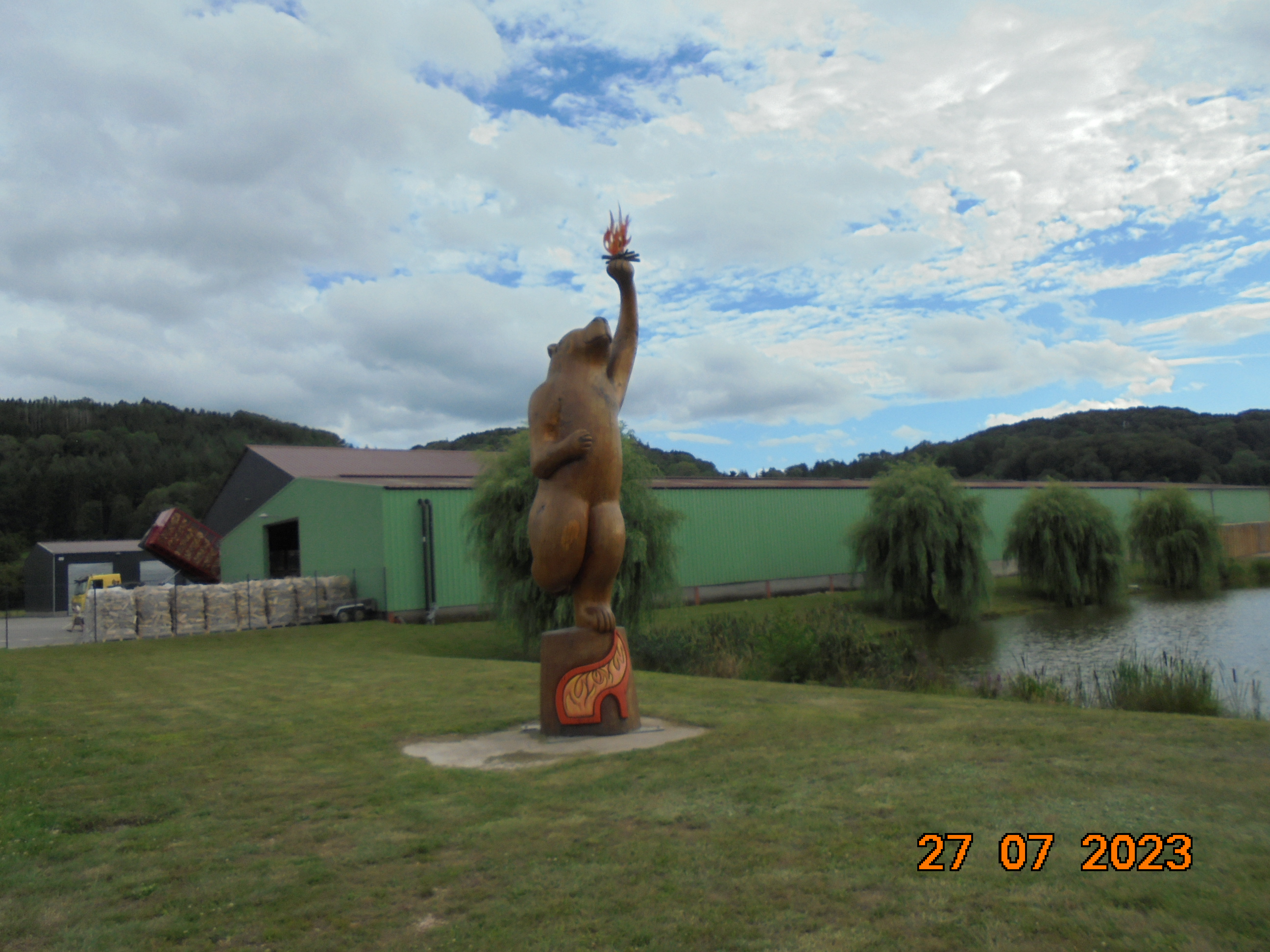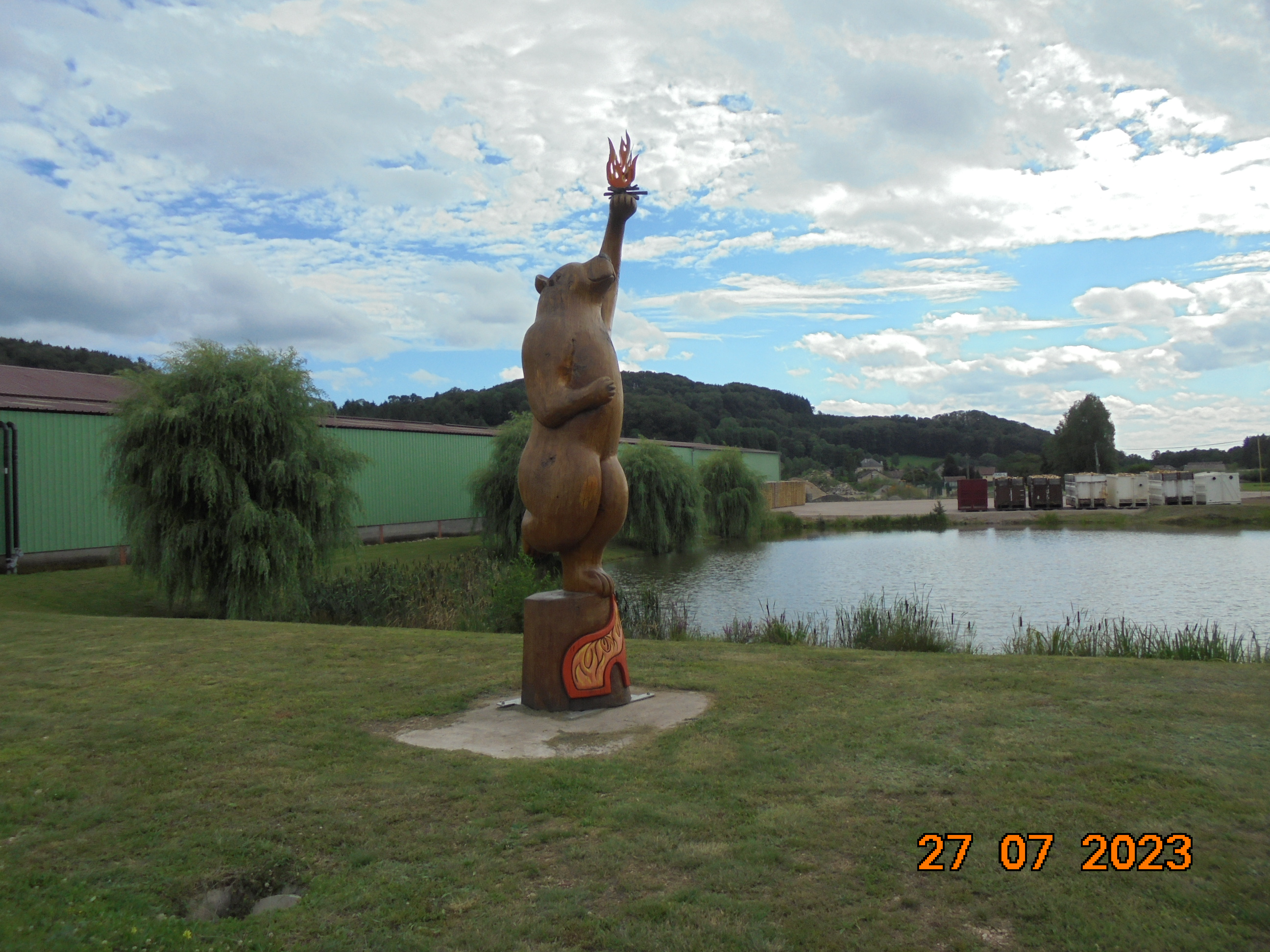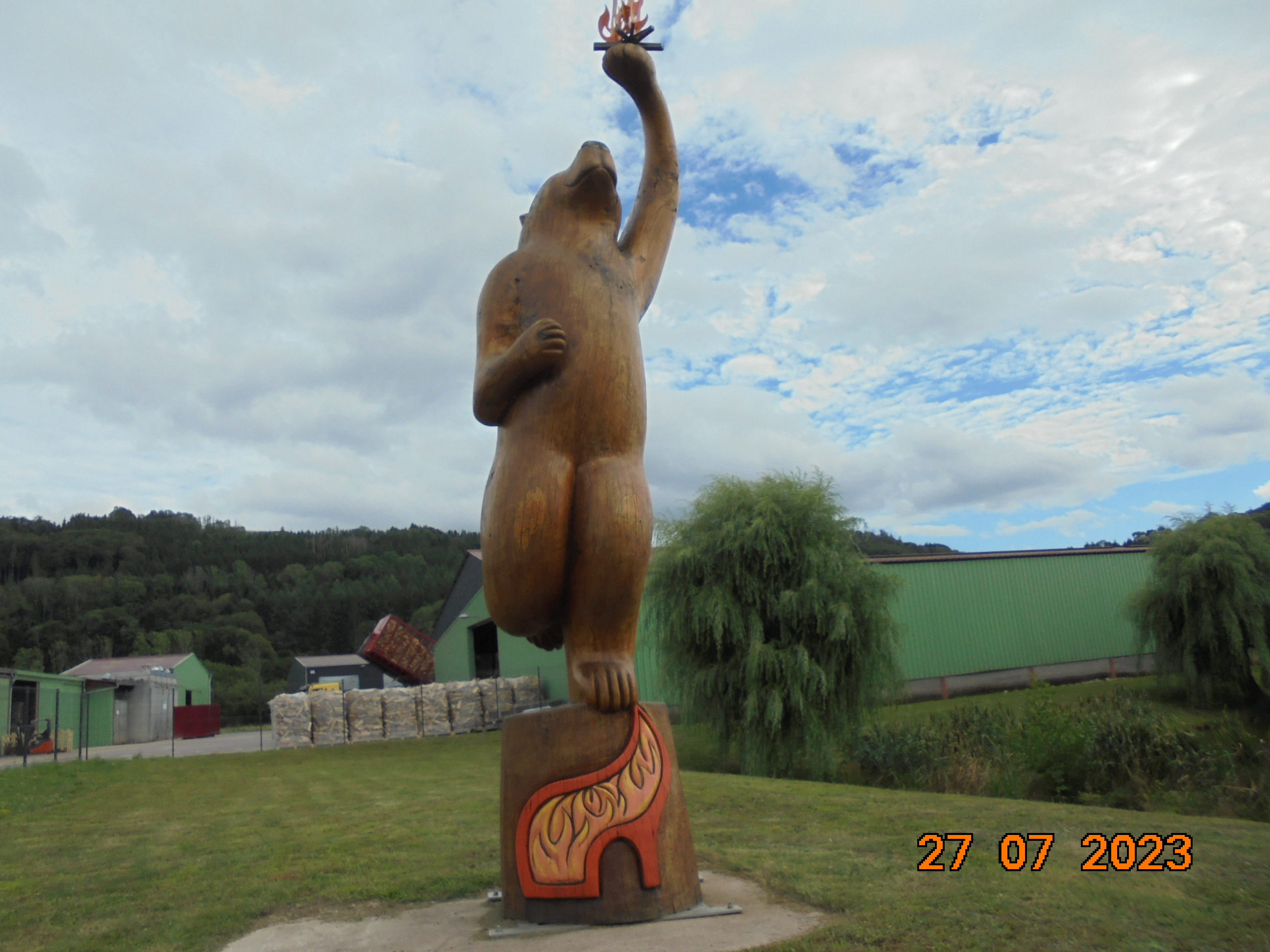 Dans quelle commune se trouve cette magnifique sculpture en bois et le nom de la scierie qui l'a fait ?.