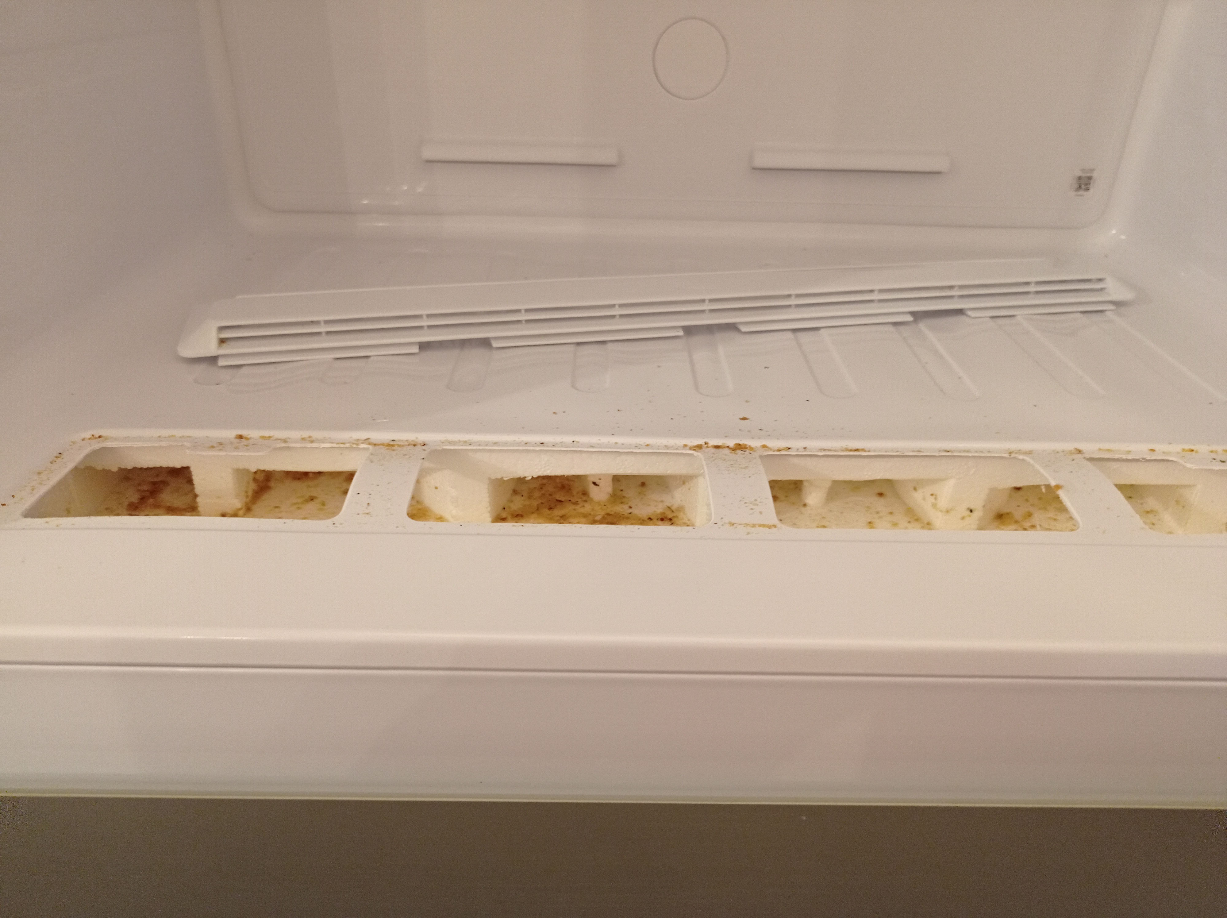 Après son départ, j'ai encore enlevé une pastille dans le compartiment frigo, la même que celle du freezer... avec de nouveau un trou caché derrière mais je n'ai pas testé : à quoi bon !
