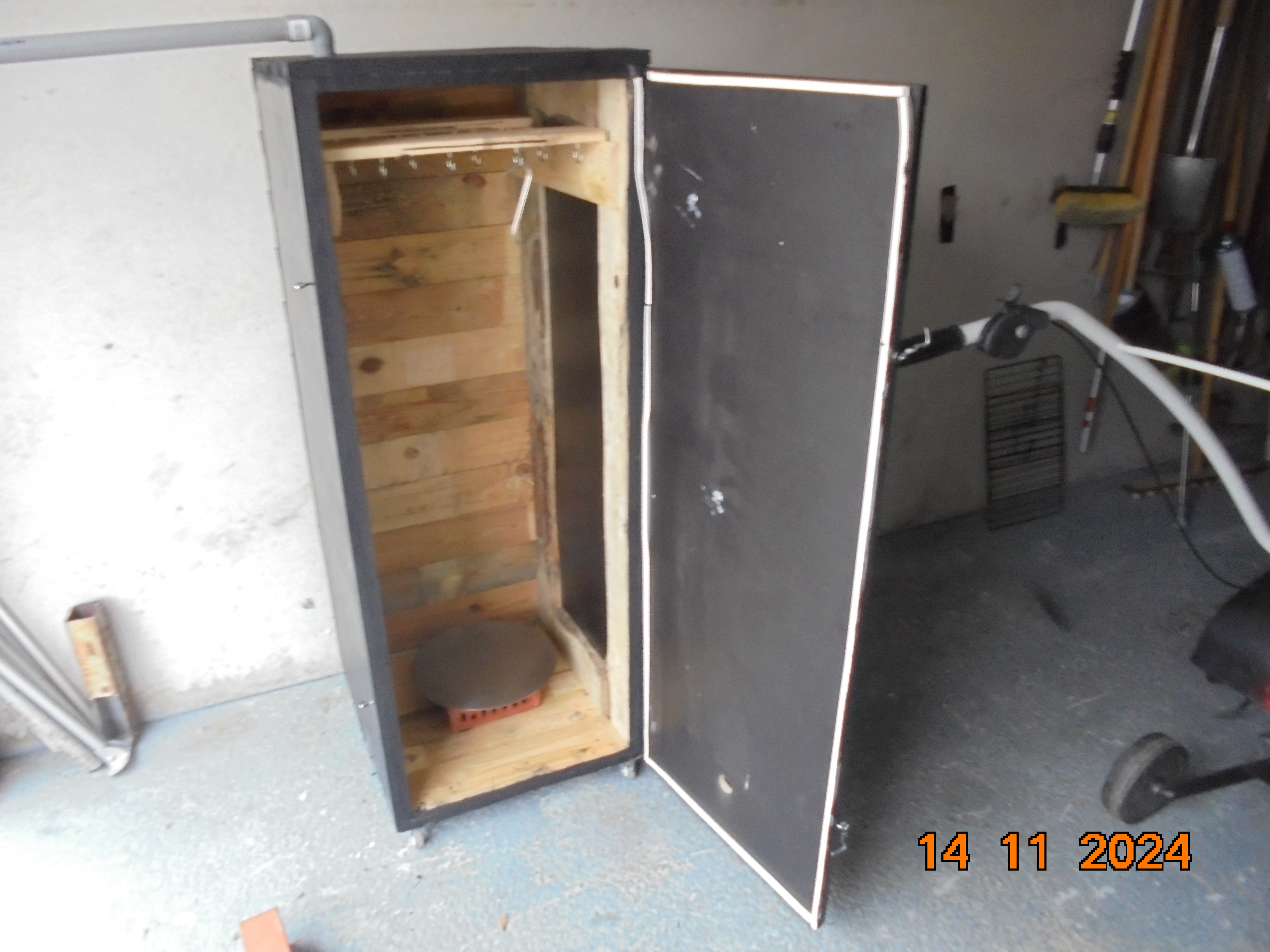 Comme je n'était pas trop satisfait de mon fumoir fabriqué avec un grand frigo HS, hier, j'ai commencé à en faire un autre, mais cette fois-ci, en bois. Normalement, il sera fini demain, car, cet après-midi, j'ai eu d'autres choses à faire plus urgente.