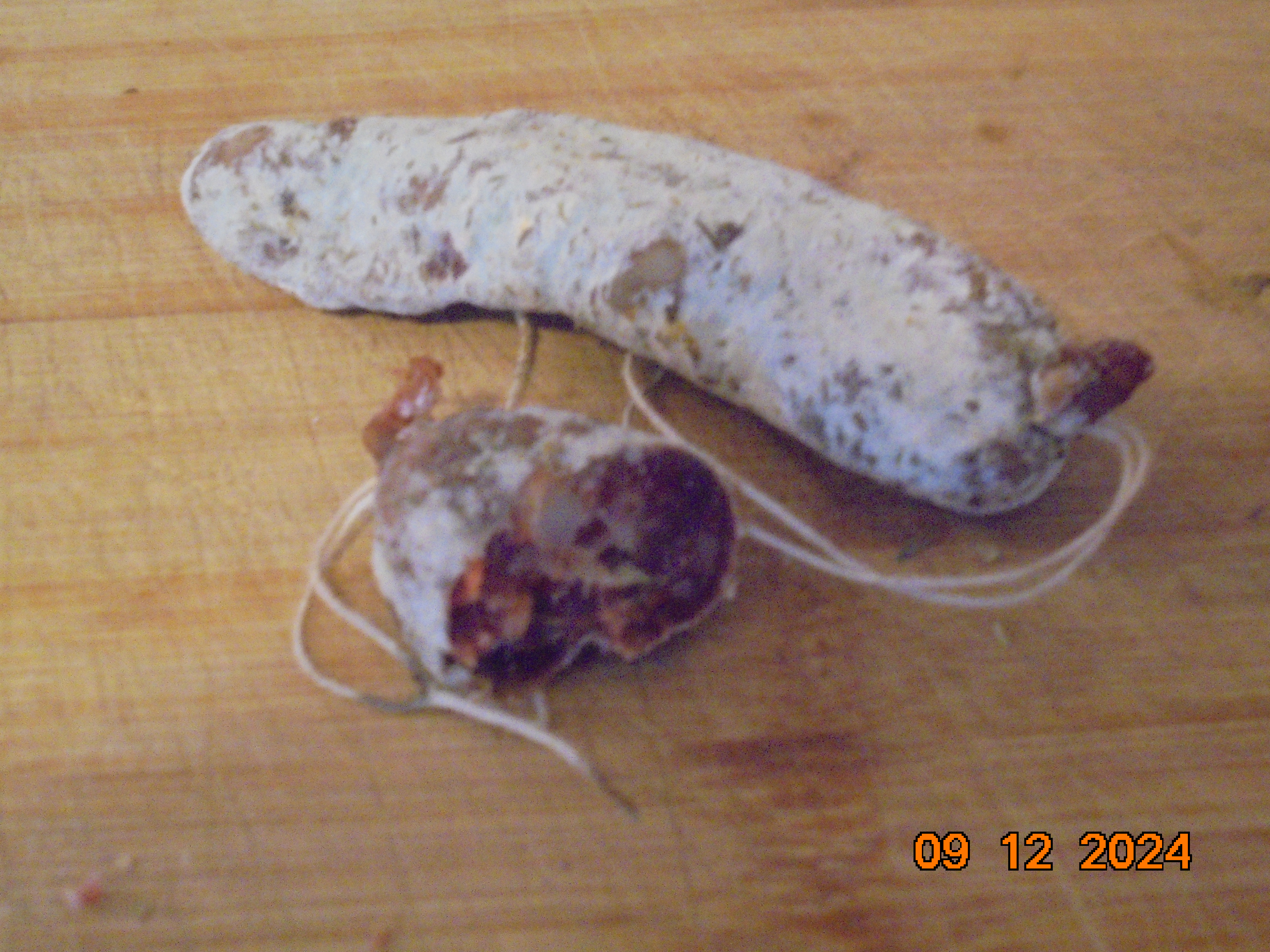 Hier, j'ai homis de dire que j'ai désalé ma coppa lundi, après l'avoir bien séchée, je l'ai badigeoné de Rhum brun, de poivre noir et d'herbe provençale faite maison.