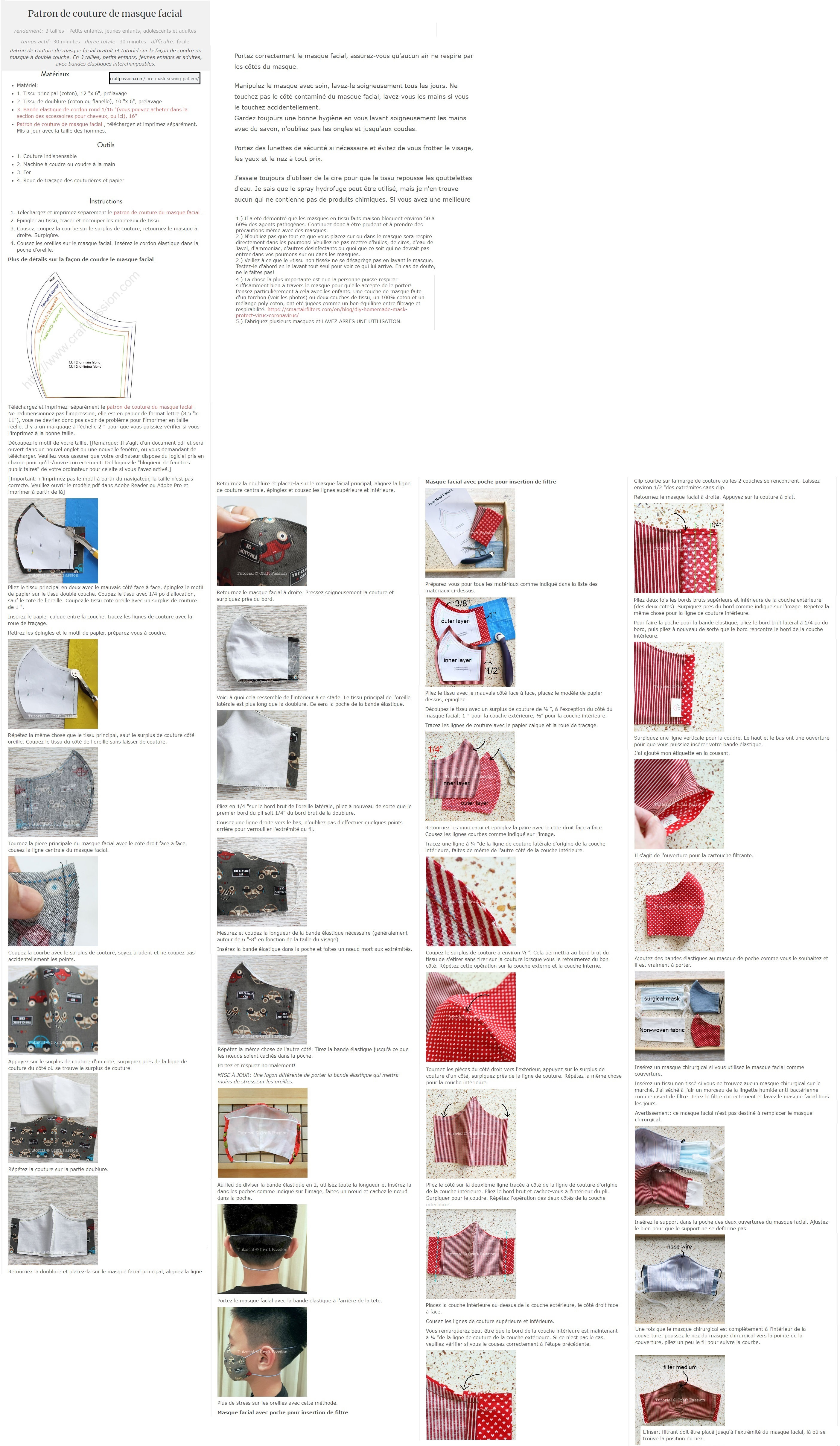 D'abord, il faut bien reconnaître le mérite de ceux qui fabrique des masques en tissus, malheureusement totalement inutile, puisqu'ils n'ont pas la normes FFPD 3 - 4 voir 2 donc totalement inutile contre le virus covid 19 et autres d'ailleurs, la seule chose qu'il faut retenir c'est pourquoi des masques, pour éviter d'être infecté et d'infecter son prochain à moins de le haïr très fort, sinon il faut savoir qu'un masque totalement aux normes se conserve selon le degré de normes 2 heures, voir 3 ou 4 heures au delà il faut le jeter et en reprendre un autre, ce qui veut dire qu'il va falloir que notre ETAT PROVIDENCE arrête de balancer de l'argent par les fenêtres inutilement et de vraiment mettre en fabrication des million de masques sur le sol Français l'armée a aussi cette capacité et pas seulement d'aller faire la guerre hors de nos frontières.