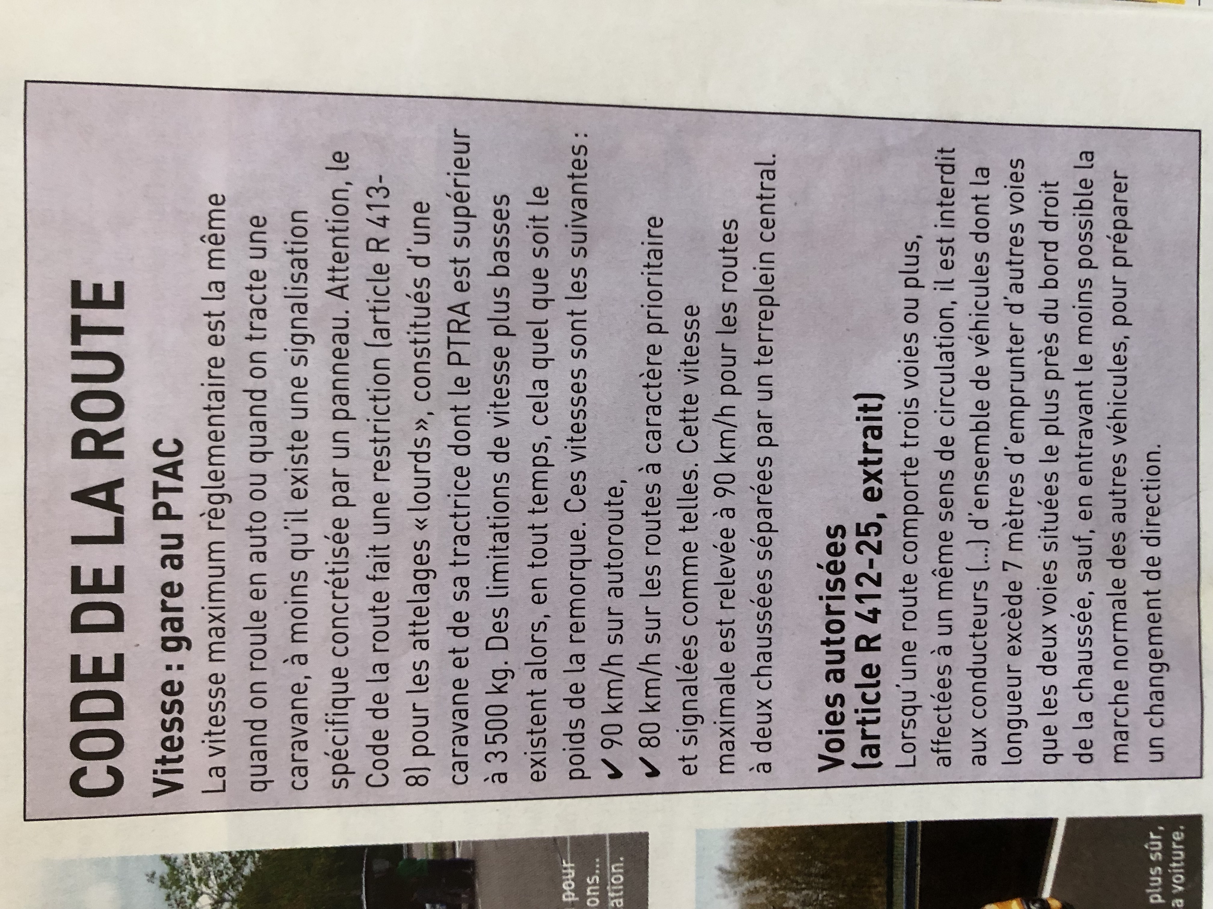 tu es limité a 90 km/h sur l'autoroute quand tu tractes ta caravane