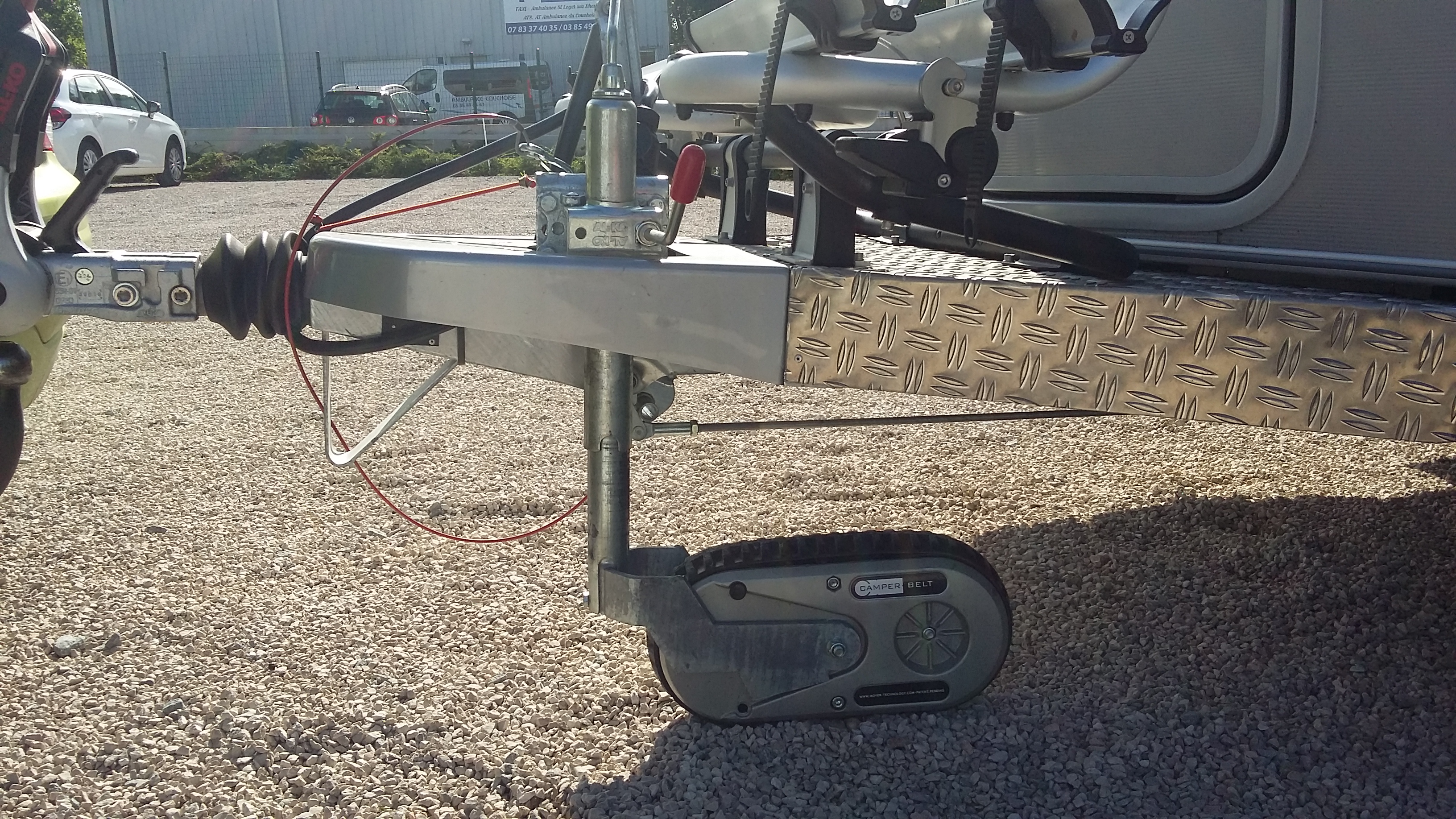 Au camping où restait la caravane, j'ai aussi eu ce problème de roue jockey quand je rentrais ou sortais la caravane... chaque fois que c'était possible en arrière mais... pour rentrer, pas le choix... c'était en avant dans un terrain humide à très humide et en basse saison... comme par ex. maintenant... dans des herbes pas tondues ! je ne connaissais pas ces types de roue et je faisais aussi avec des plaques de désenlisement... sauf qu'avec 2 je n'avais pas assez car la caravane devait faire un demi tour !