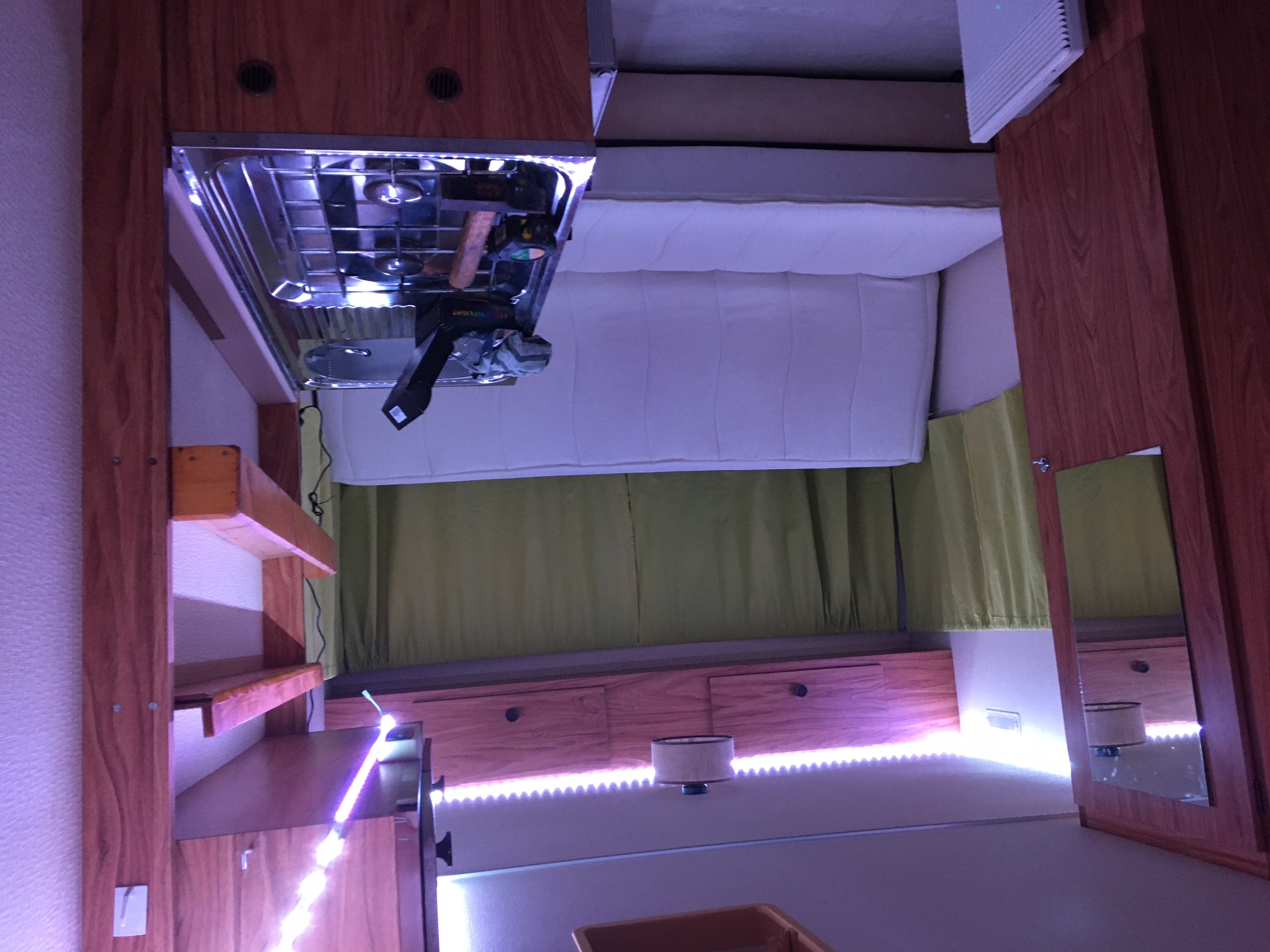 j'ai finalisé l'installation du radiateur et de l’électricité. le nouveau lino et les deux bandeaux led de 5m illuminent très bien l’intérieur