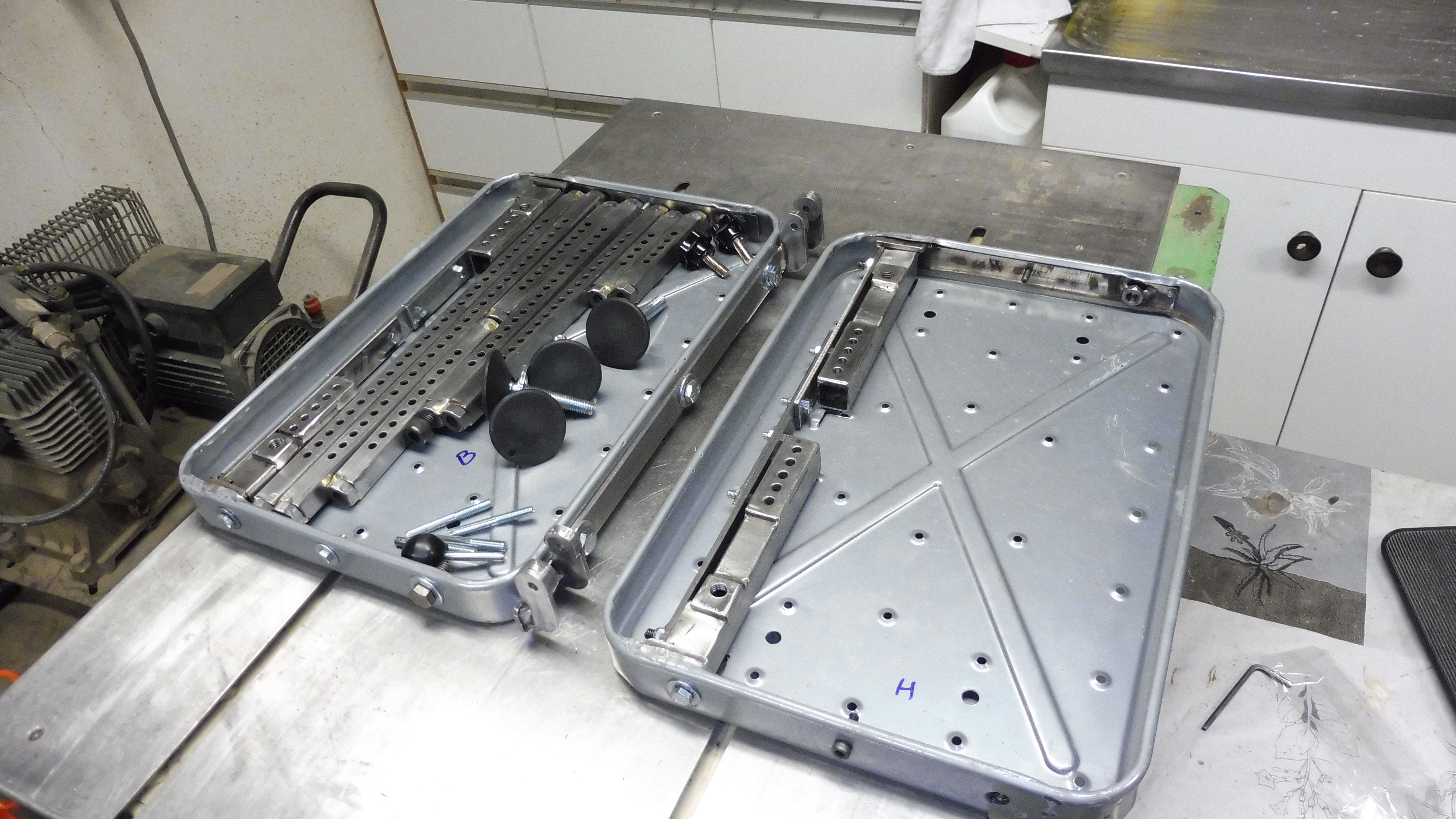 Je placerai toutes les pièces dans un marchepied et le second servira de "couvercle". Je n'ai pas encore trouvé une solution de transport, petite mallette bois ou simple sac, sans doute plus pratique...