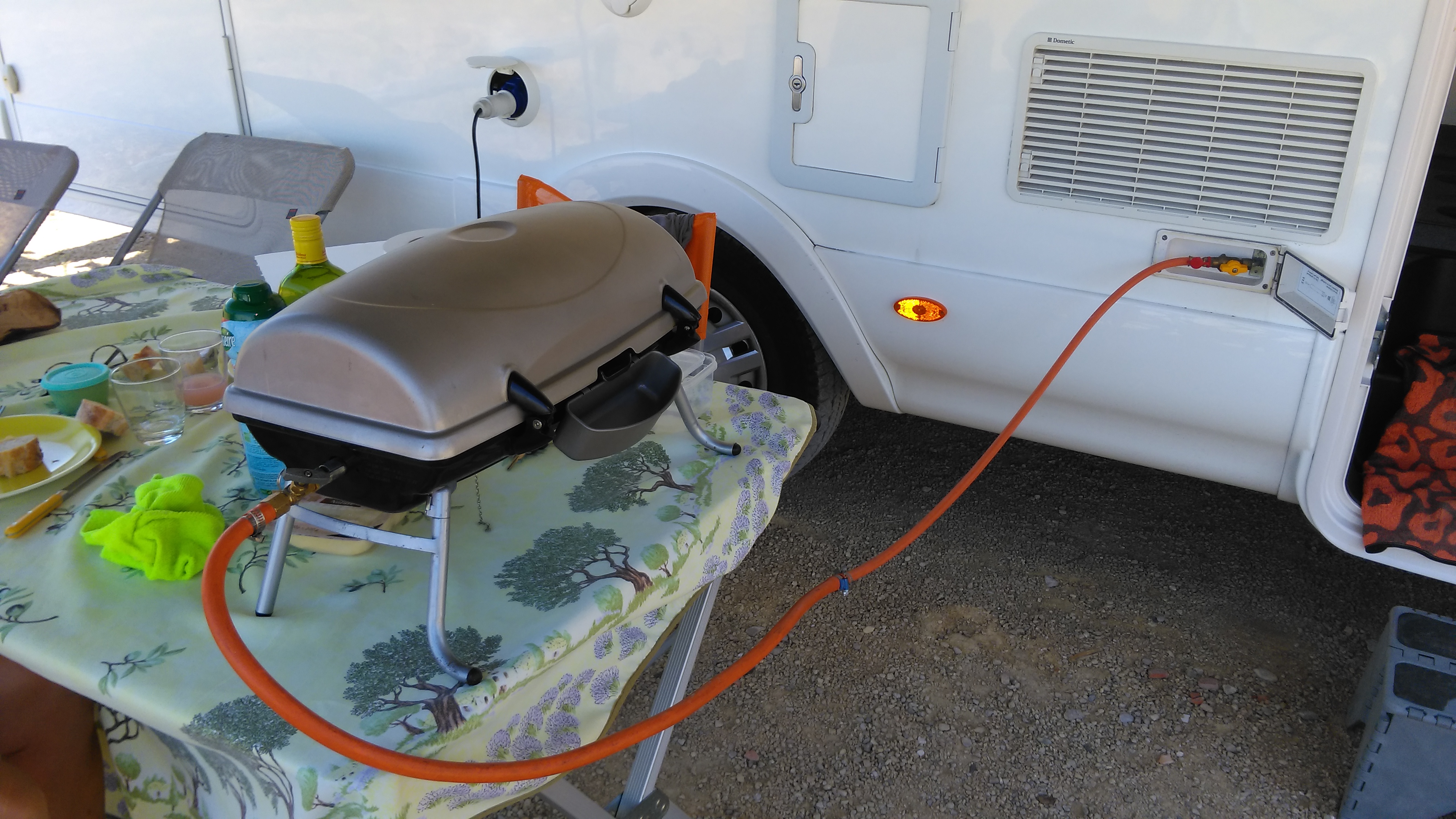 oui la prise gaz est aux normes car elle faisait partie de la commande de la caravane. C'est le constructeur qui l'a installé. j'ai la même prise gaz extérieure que sur la photo. Il me semble aussi que cela devrait marcher, reste une inconnue, est ce qu'il est possible que faire fonctionner les 2 appareils en même temps sans baisse de puissance et est ce que le détendeur sera assez puissant ? tu as raison ...