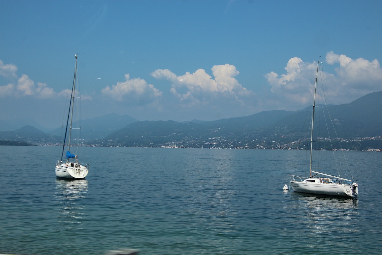 ITALIE - Lever du soleil sur le Lac majeur et bateaux sur le Lac de Garde, un très bon souvenir d'avoir campé en mai dernier au bord de ces lacs italiens