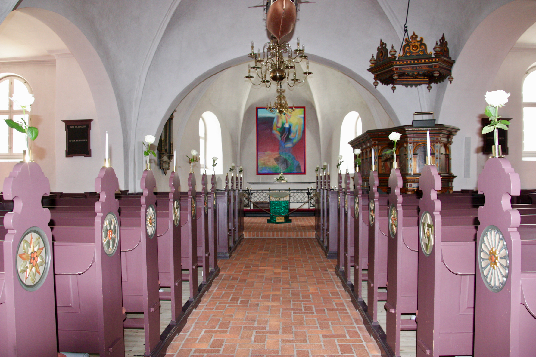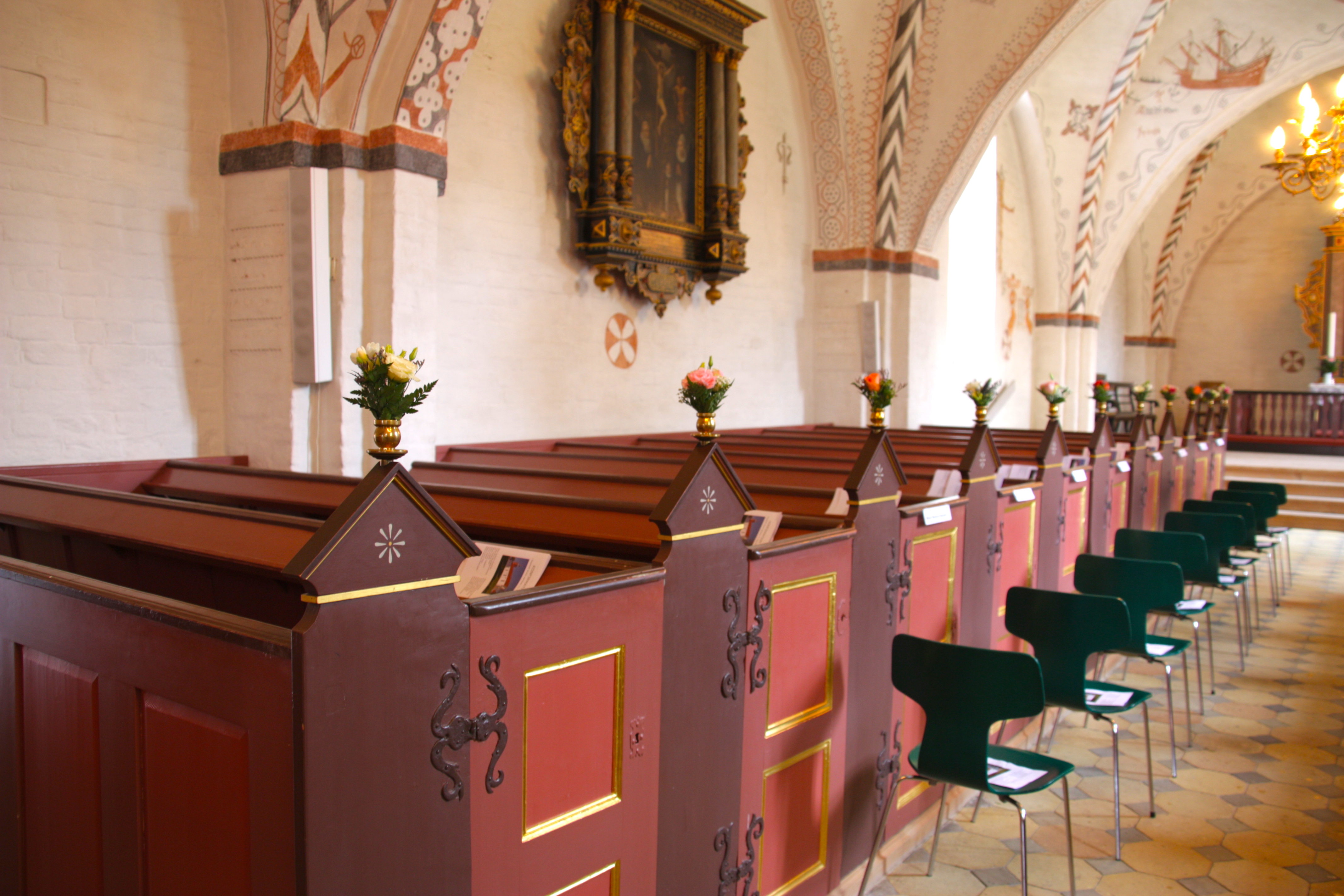 je ne pourrais pas tout remettre, ce serait trop long, ou alors quelques-unes de temps à autre, voici cinq belles églises du Danemark, des églises qui n'ont rien à voir avec les nôtres (même si les nôtres sont très belles) des sièges gais et en couleur, et n'oubliez pas que le Danemark n'est pas si loin que ça, en caravane vous êtes facilement dans le JUTLAND !