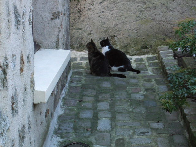 Je vous donne la réponse. Lorsque les précédents propriétaires ont retapé ce corps de ferme (en ruine en 1974), ils ont récupéré/acheté des pavés qui viennent des abords du château de Versailles, car les pavés furent remplacés par du bitume autour du château à cette époque.