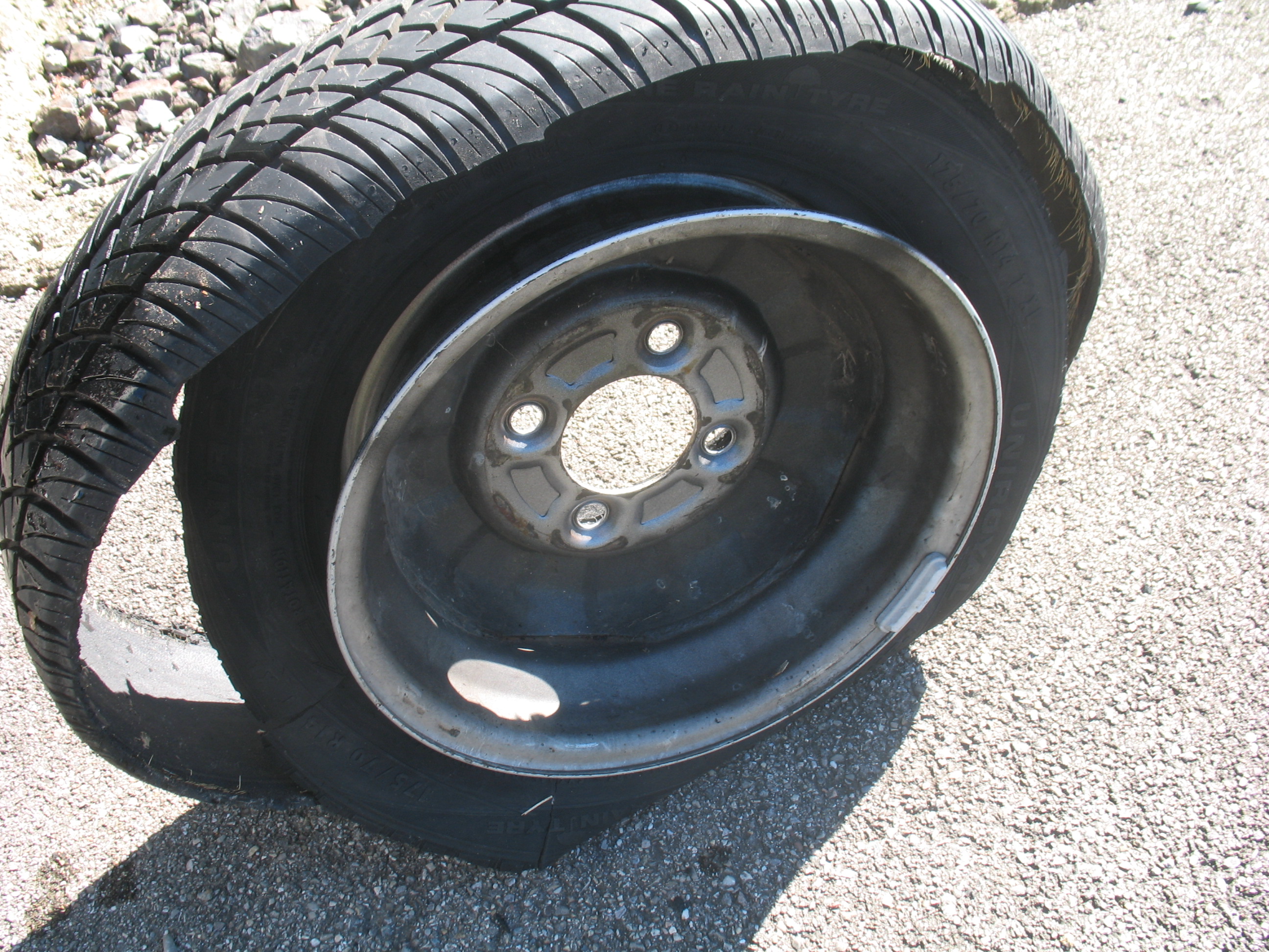 Roue de secours. Jamais servie pour la caravane mais celle de la voiture a servie.