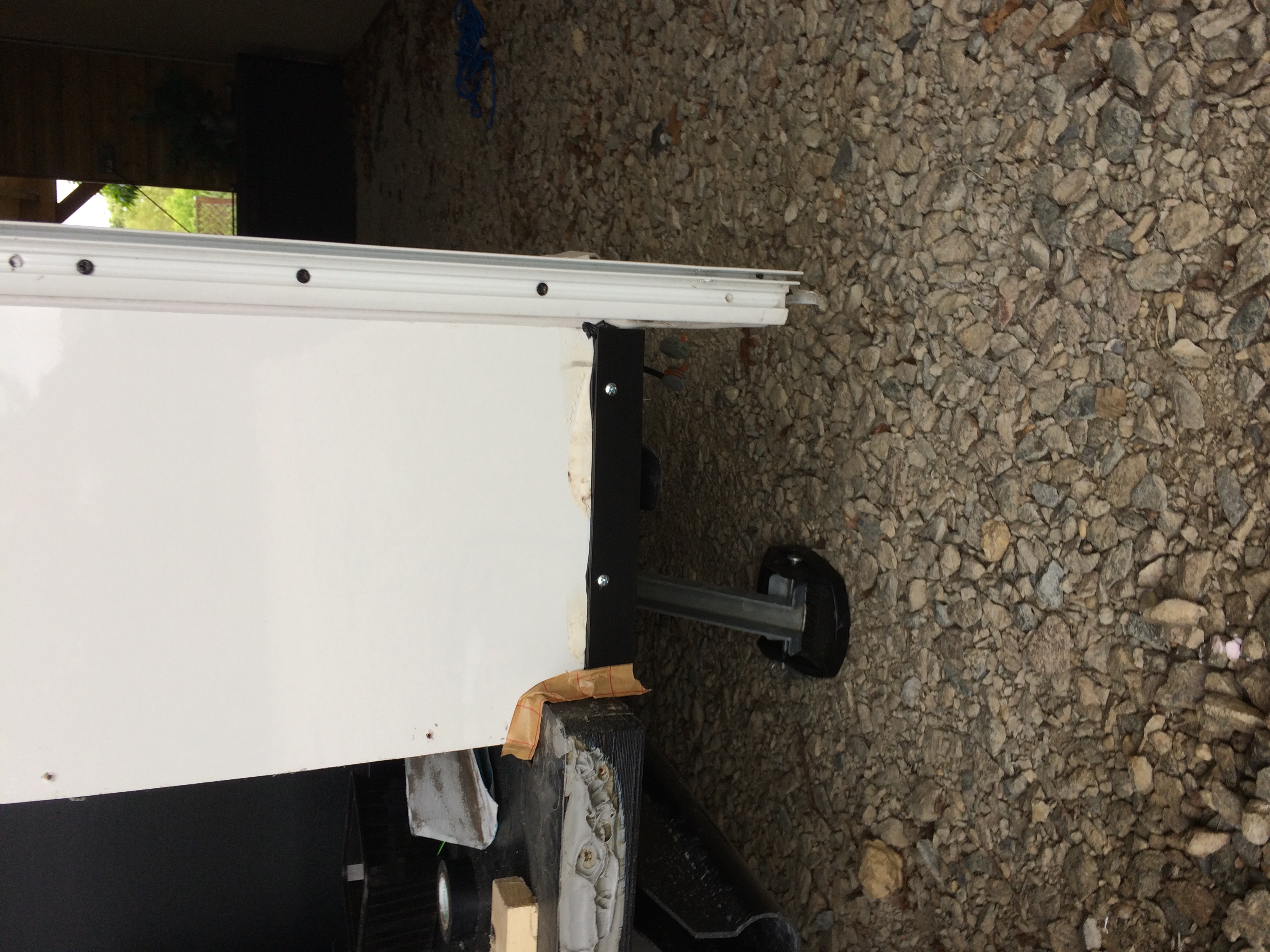 J'ai déposé la partie basse de la face avant , mis de la peinture goudronnée sur les parties en bois (après séchage) remastiquer avec du butyle en bande et j'ai mis une plaque plastique sur les parties basses droite et gauche afin d'éviter que l'eau pluviale ne migre sous le plancher .....j'ai aussi mis une gouttière (collée au butyle) pour limiter encore les risques d'infiltrations ......