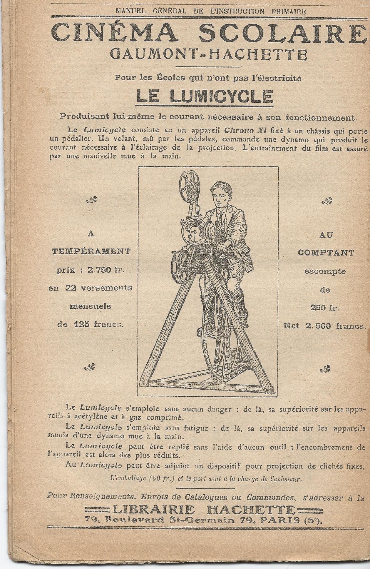 Vendu vers 1920 pour projeter des films dans une école. Fallait pédaler et sur place