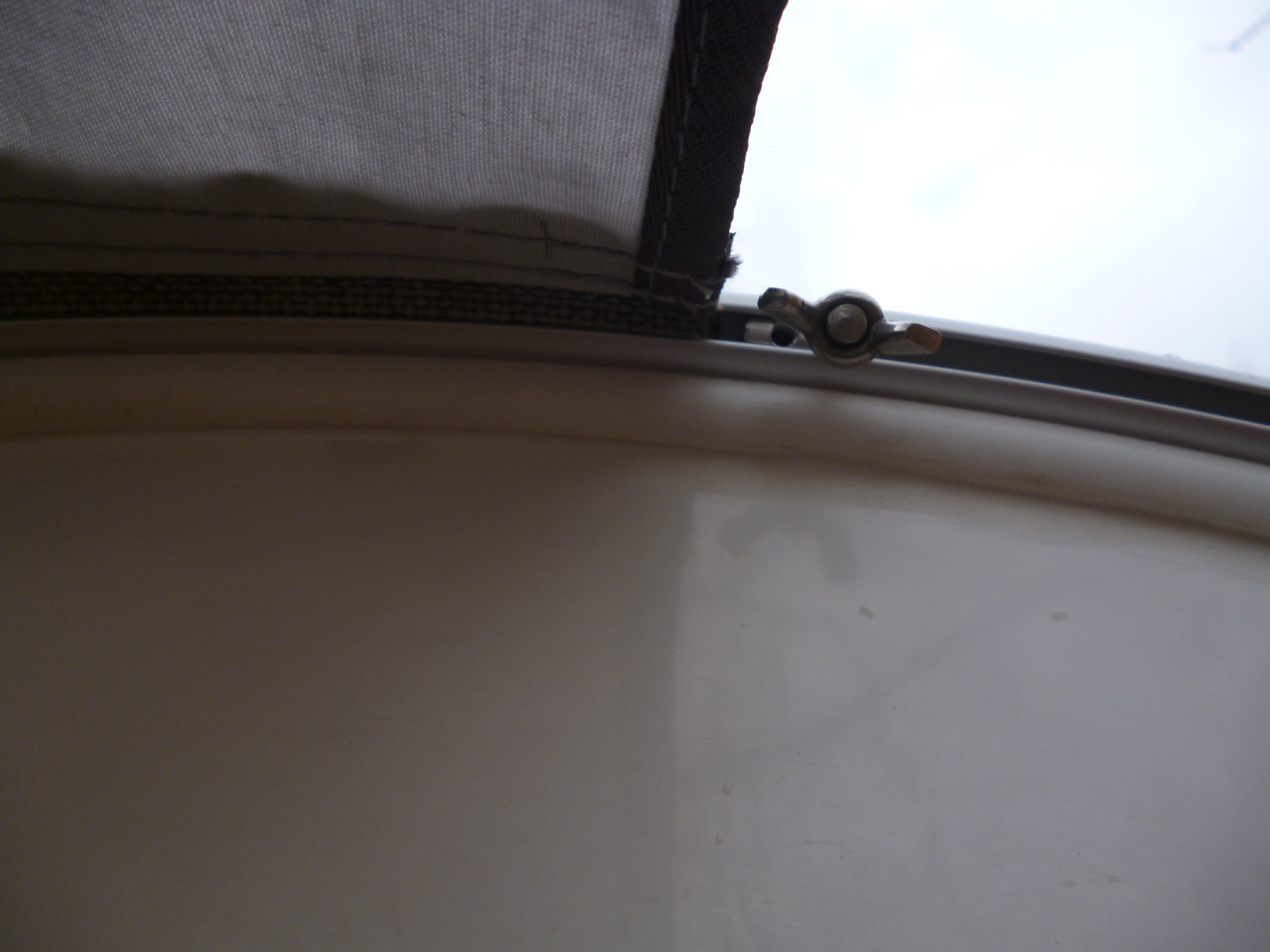 le sol étant un peu mou, les sardines avaient tendance à bouger dans le sol donnant ainsi du "mou" à la toile, je verrai l'amélioration à apporter après un ou deux WE d'utilisation.