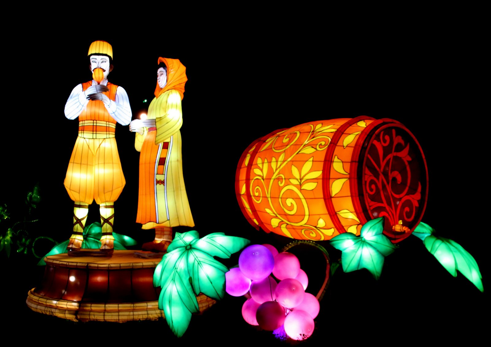 36 tableaux féériques issus des légendes chinoises dont 6 tableaux dédiés à la ville de Gaillac et au vin de la région.