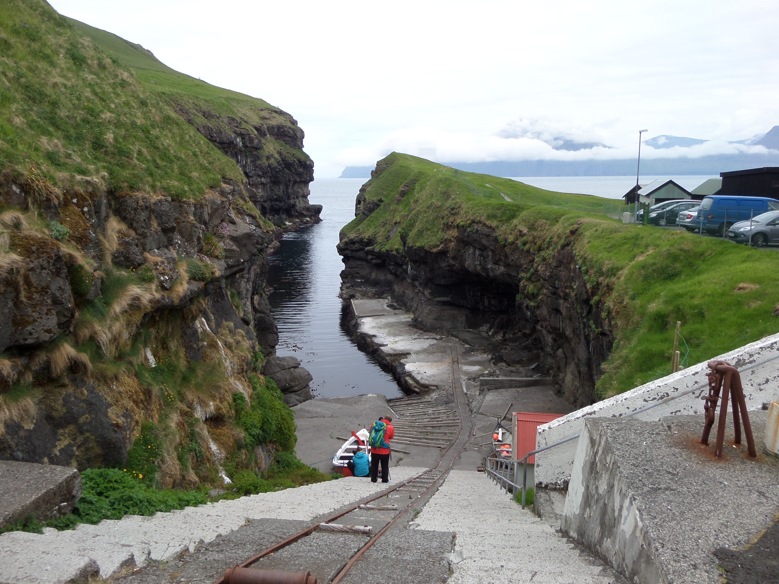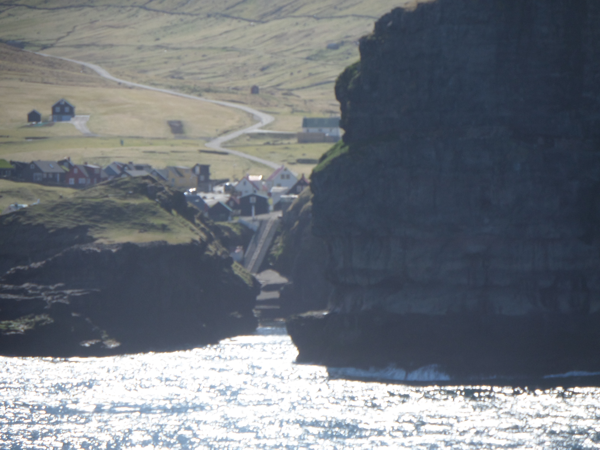 Gjógv – ravin en féringien – sur l’île d’Eysturoy est plus qu’intéressant : le port du village se situe dans une entaille profonde de la falaise